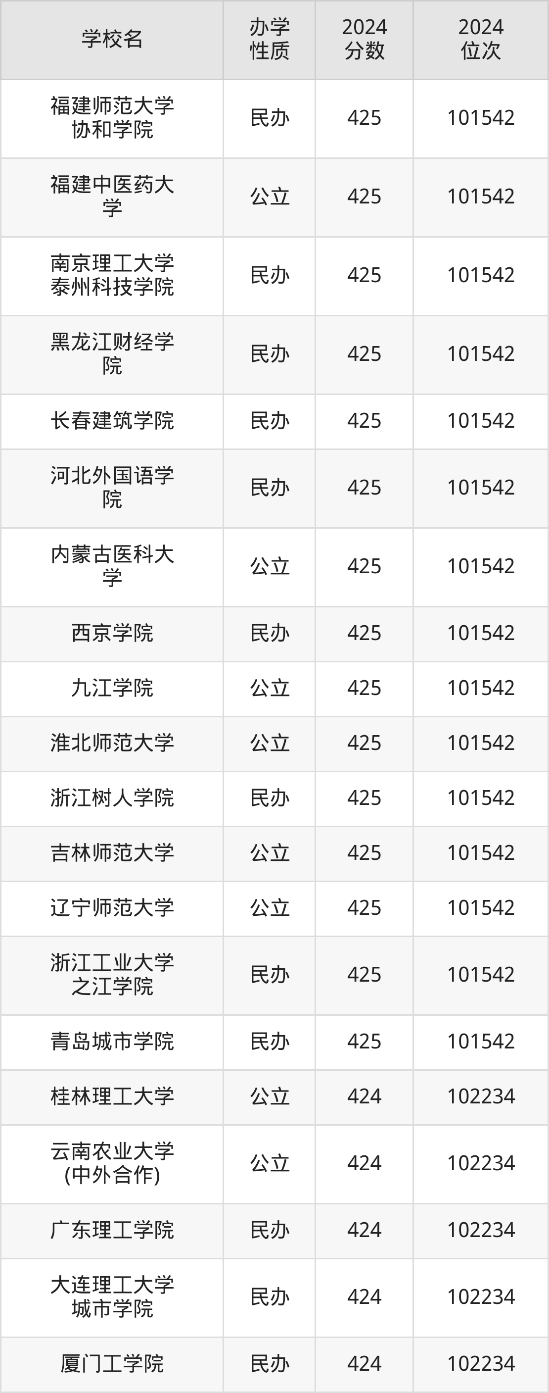 | 福建师范大学 协和学院 | 425 | 101542 |