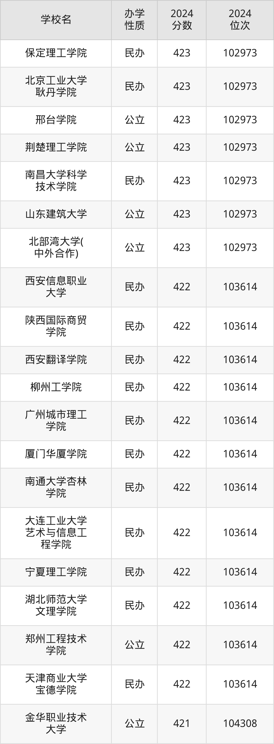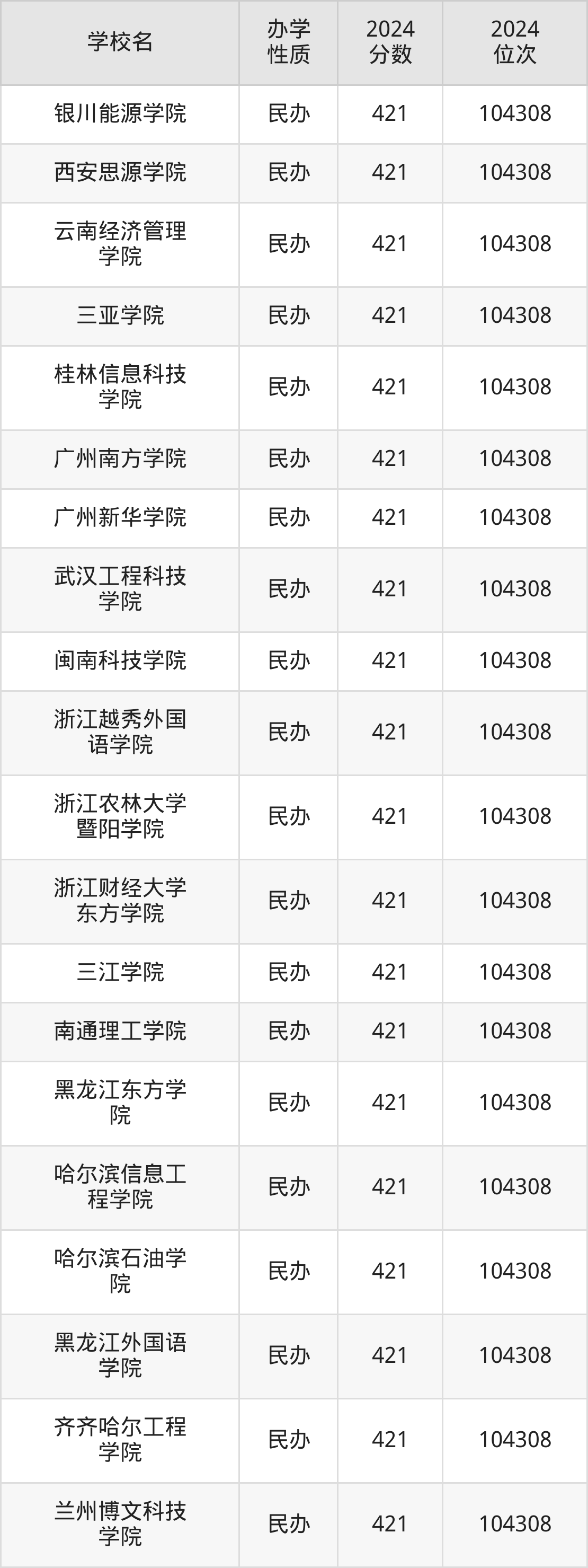 | 哈尔滨剑桥学 院 | 420 | 104989 |