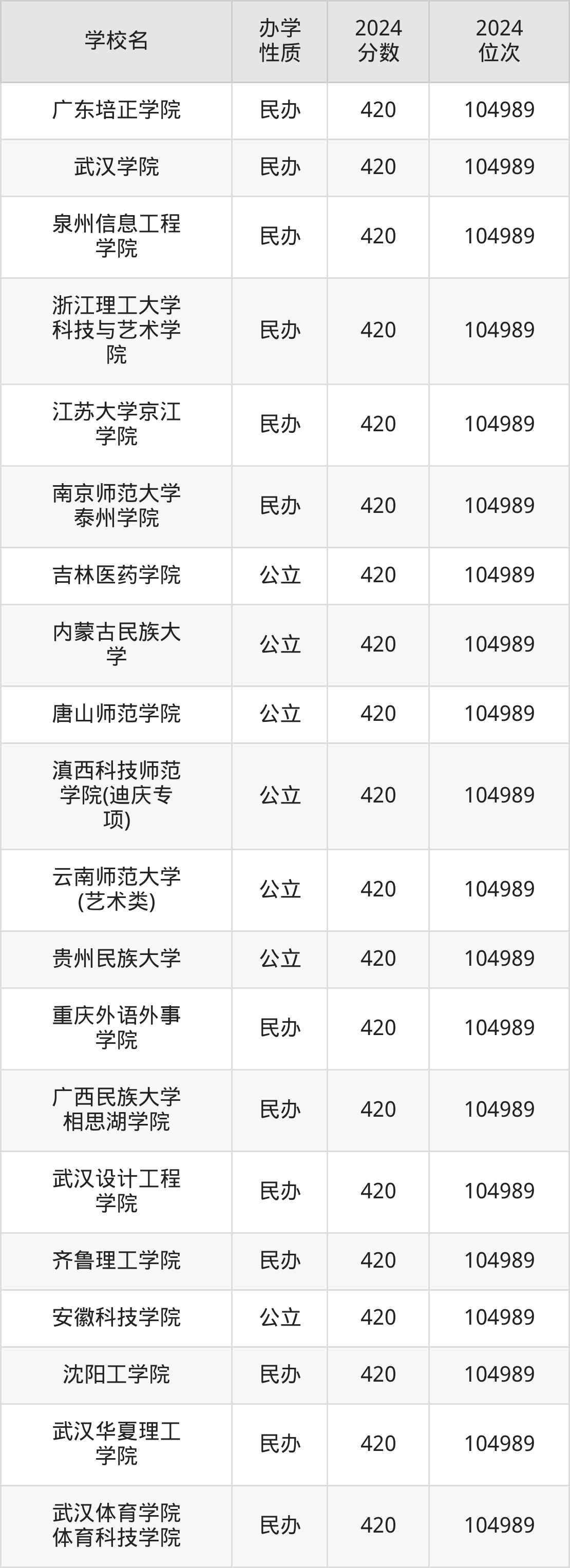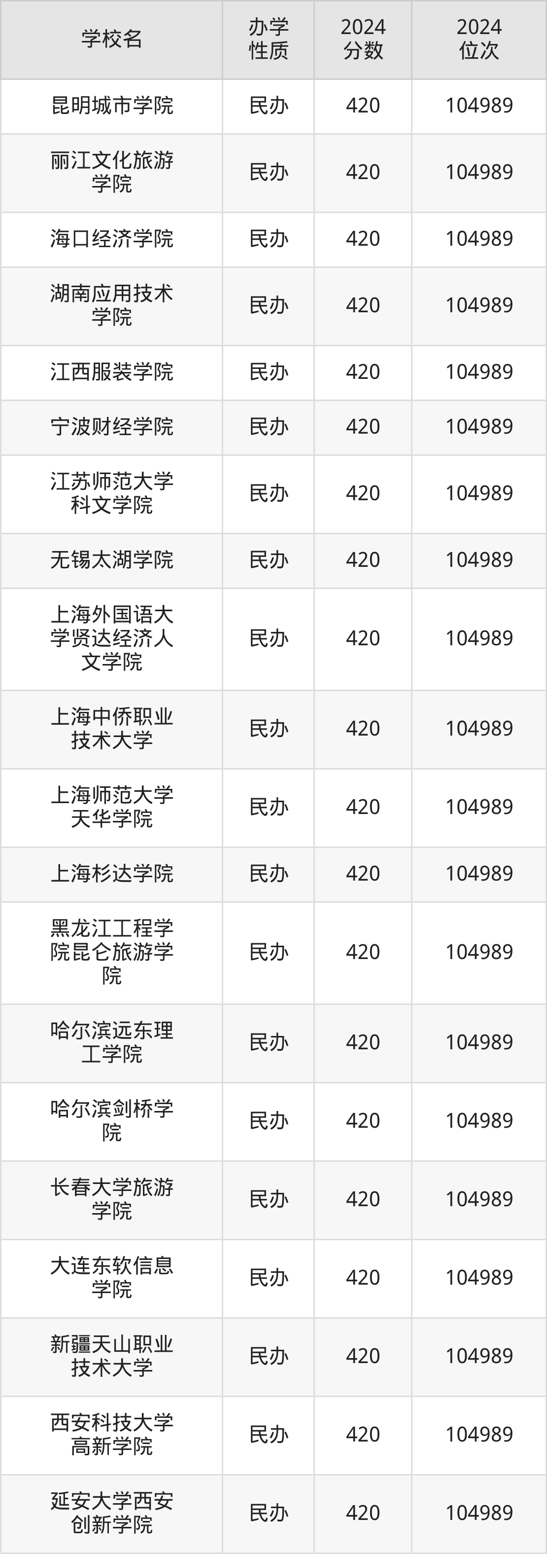 | 丽江文化旅游 学院 | 420 | 104989 |