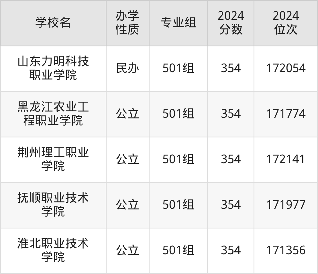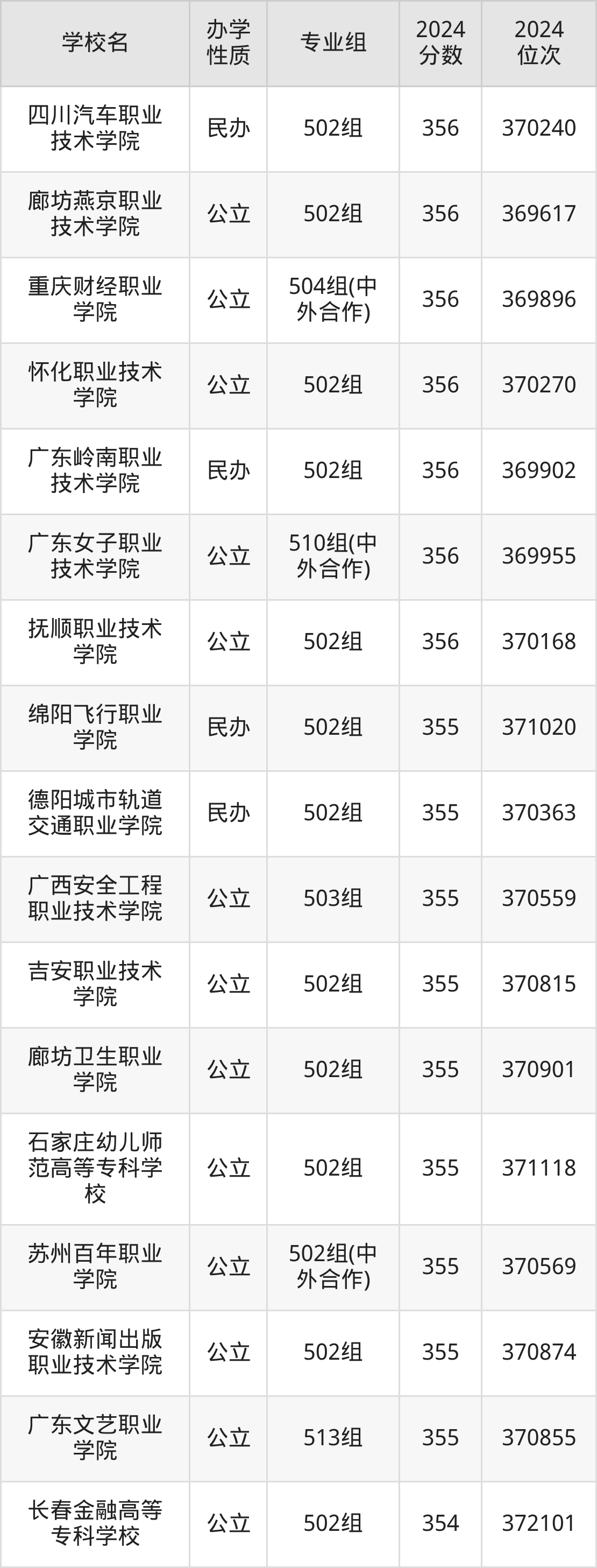| 长春金融高等 专科学校 | 502组 | 354 | 372101 |