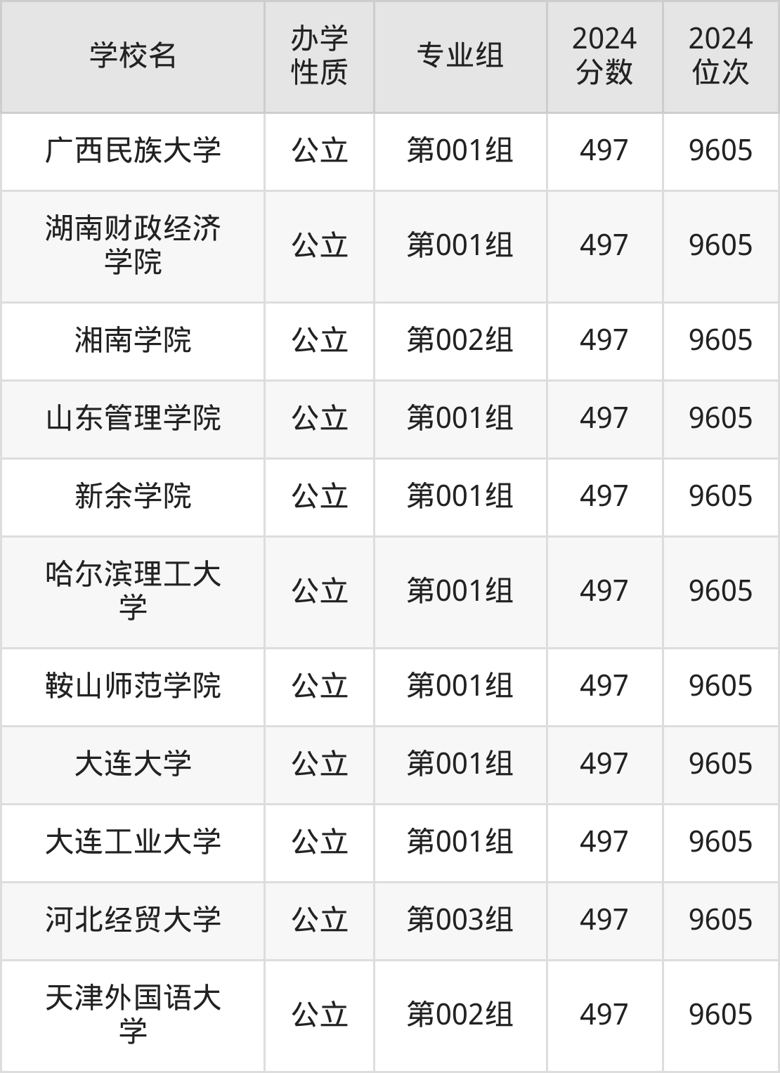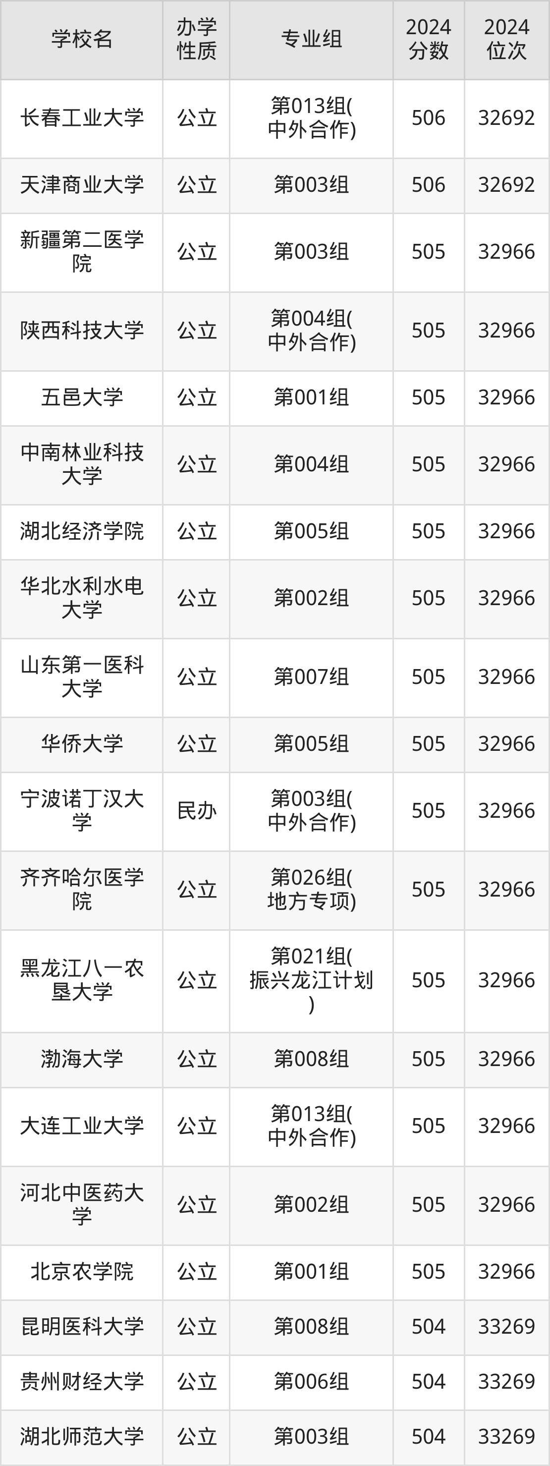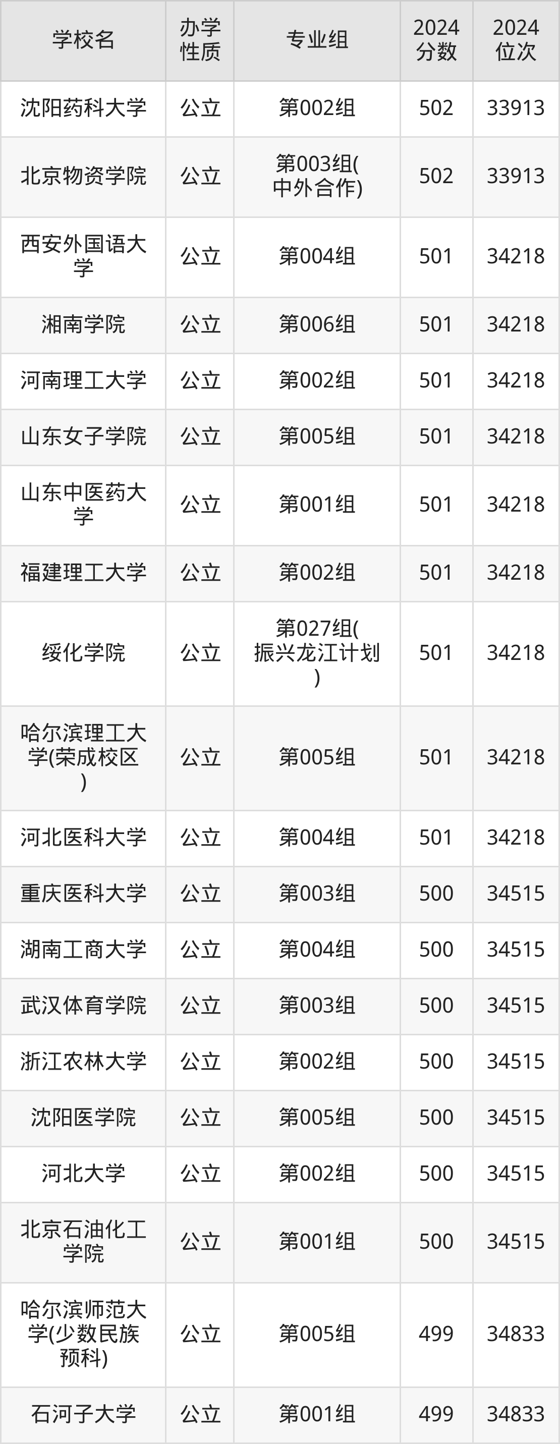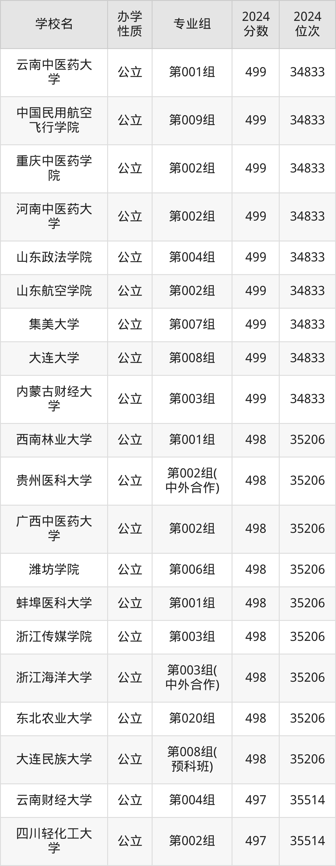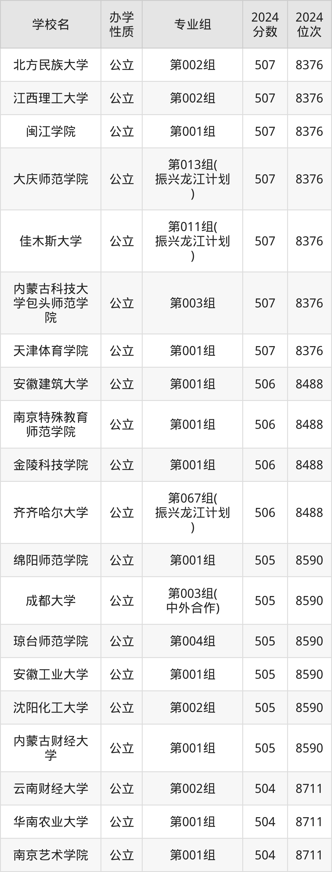 | 学校名 | 专业组 | 2024 分数 | 2024 位次 |