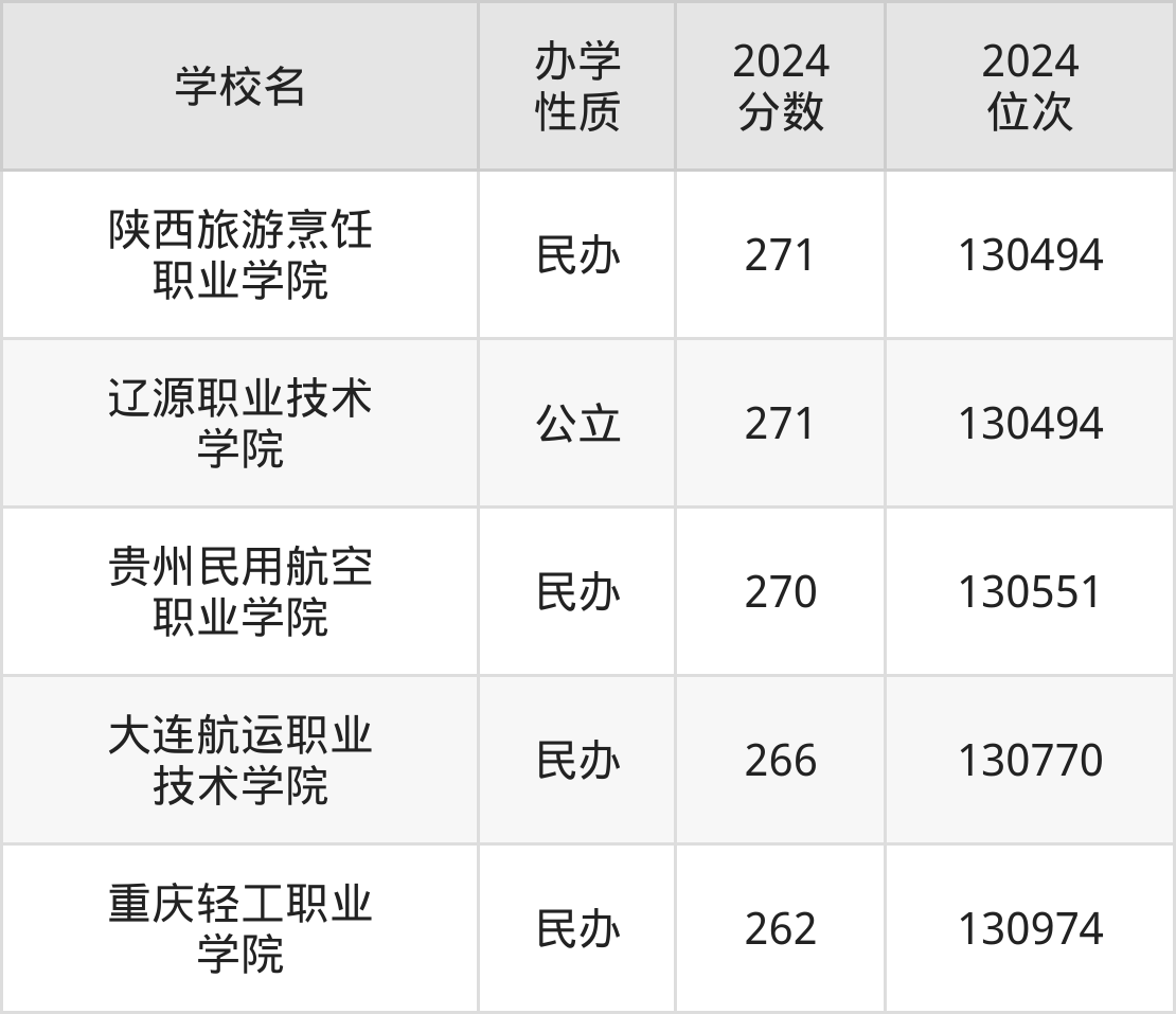 | 贵州民用航空 职业学院 | 270 | 130551 |