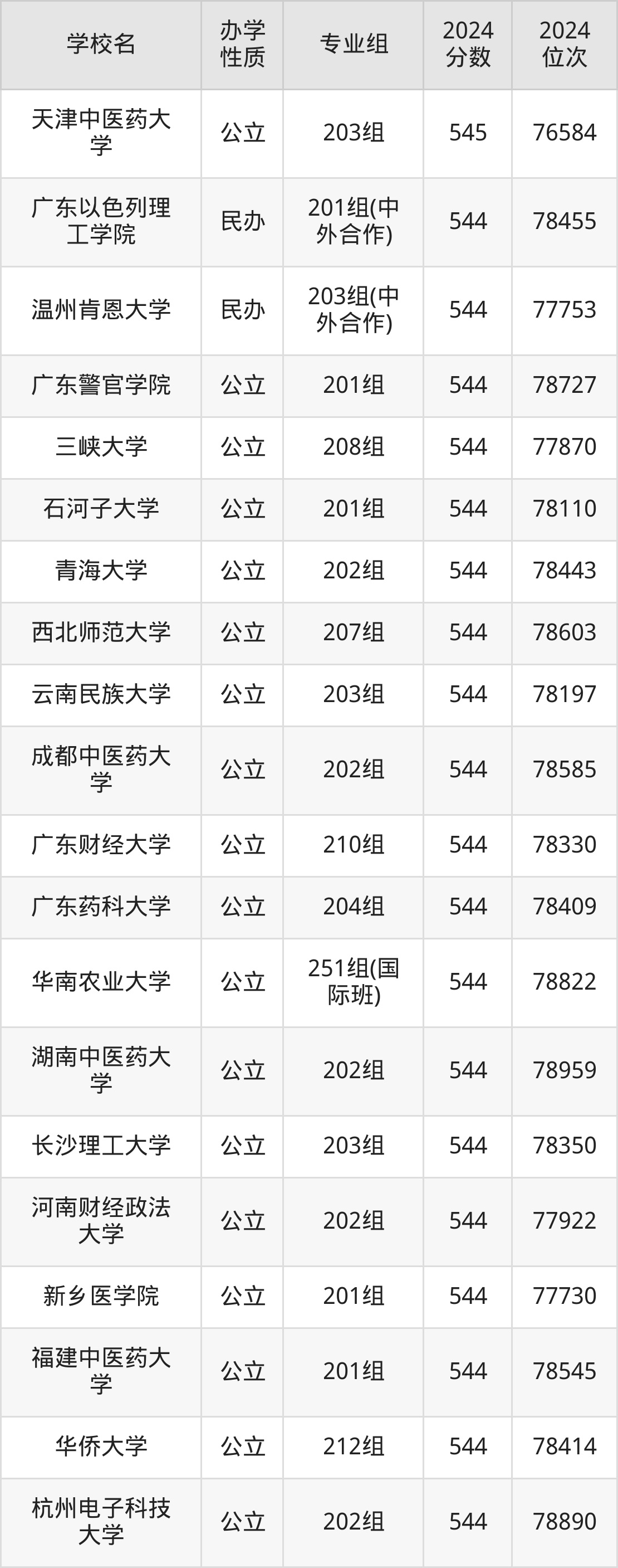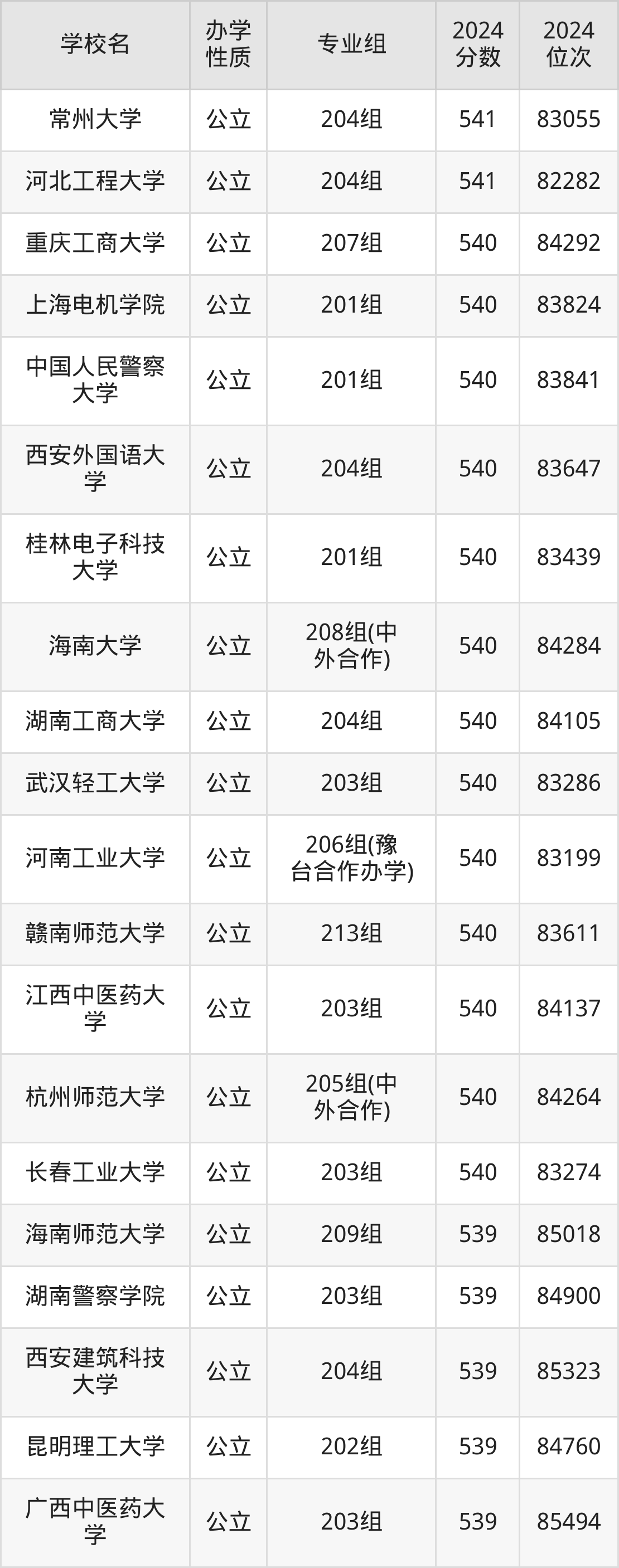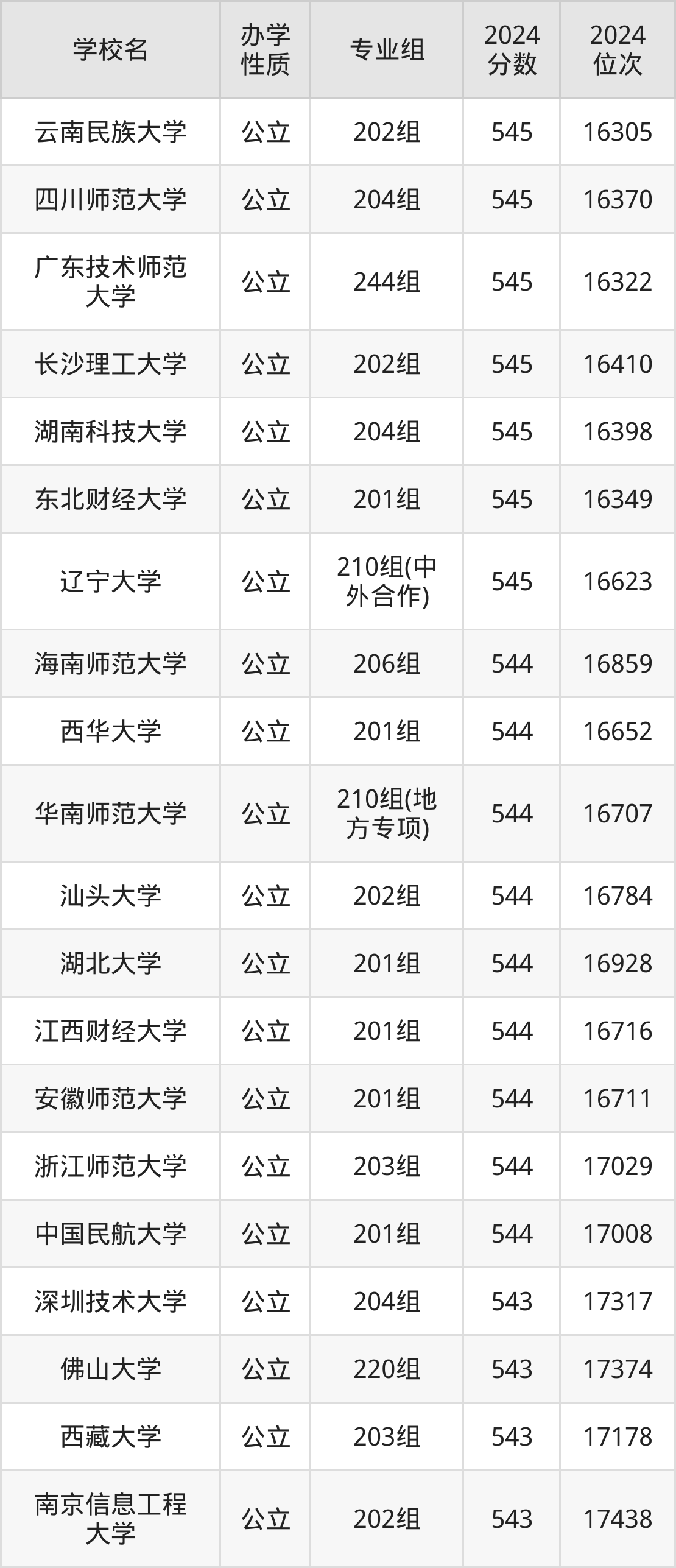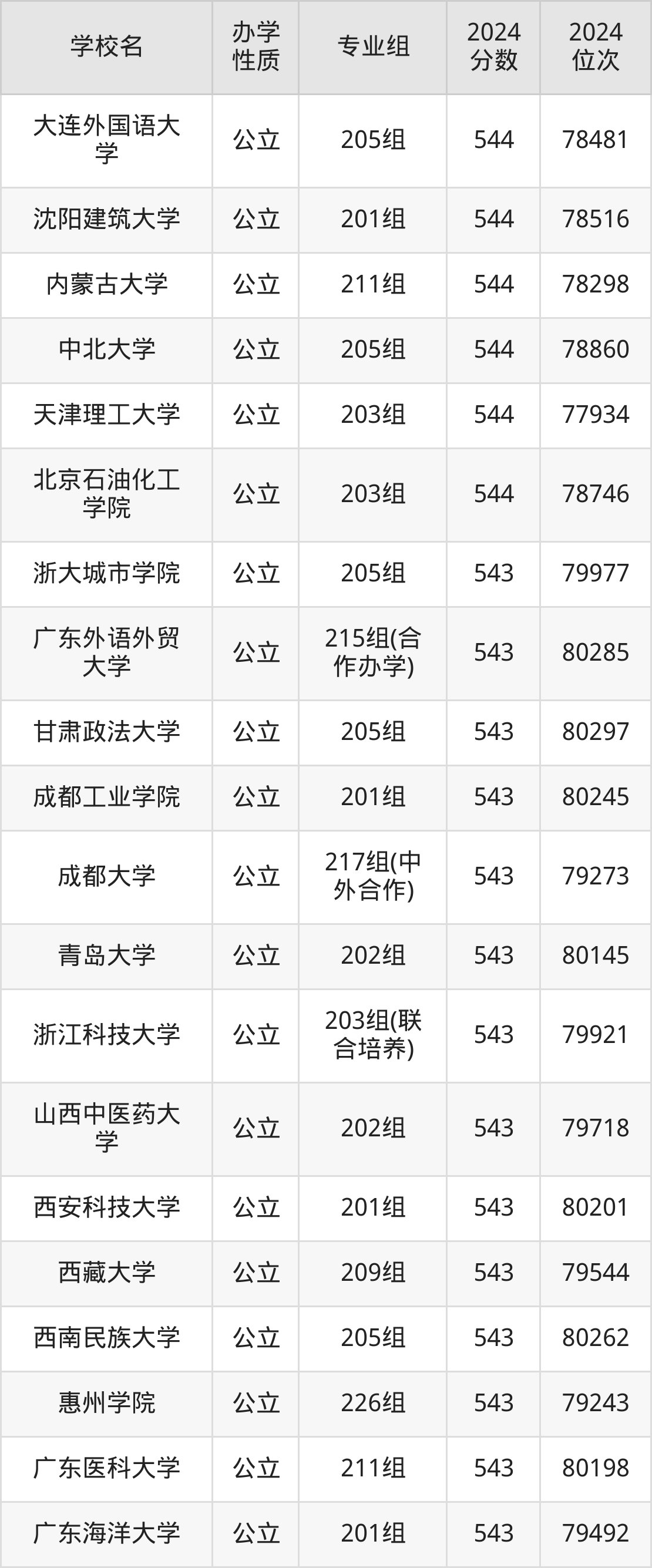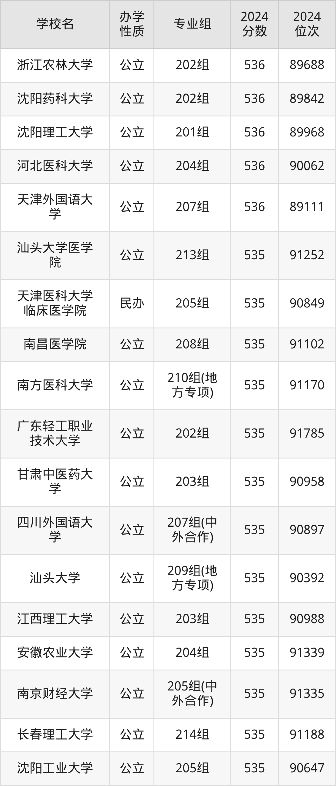 | 学校名 | 专业组 | 2024 分数 | 2024 位次 |