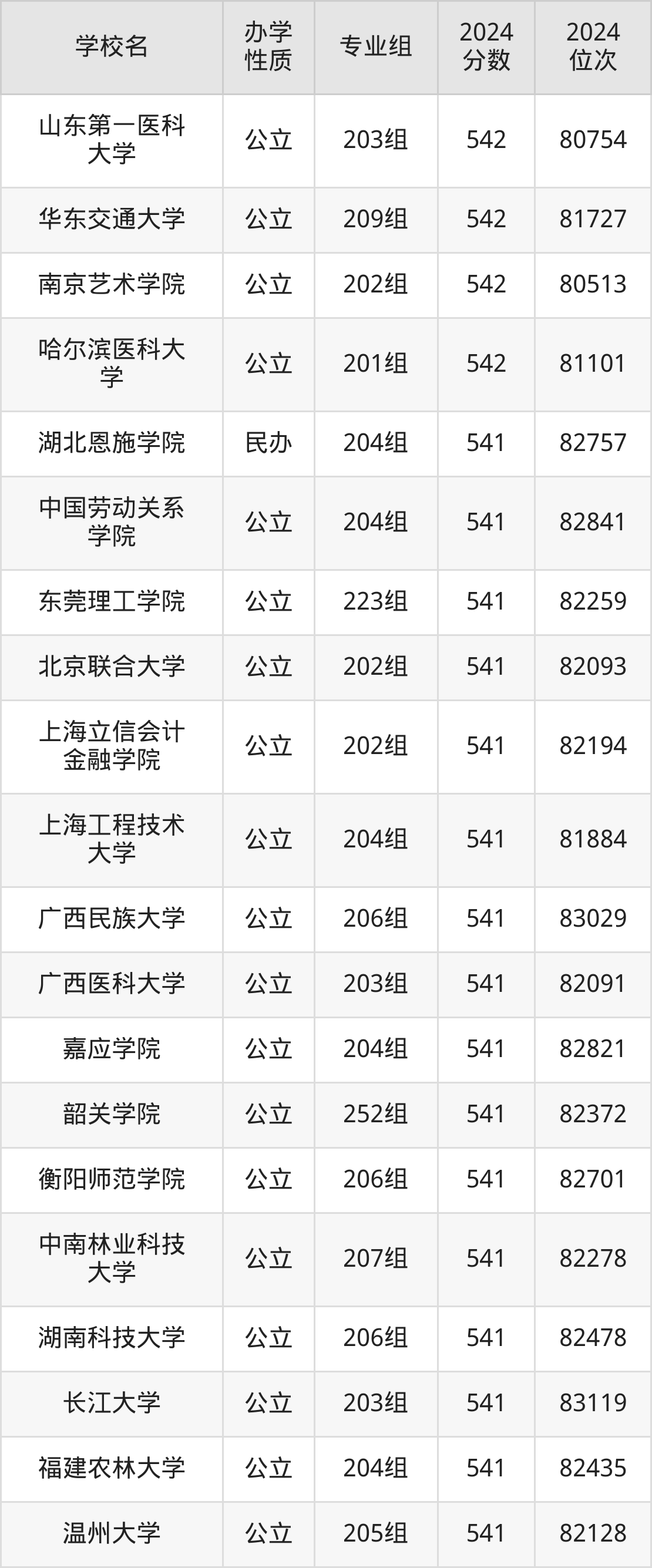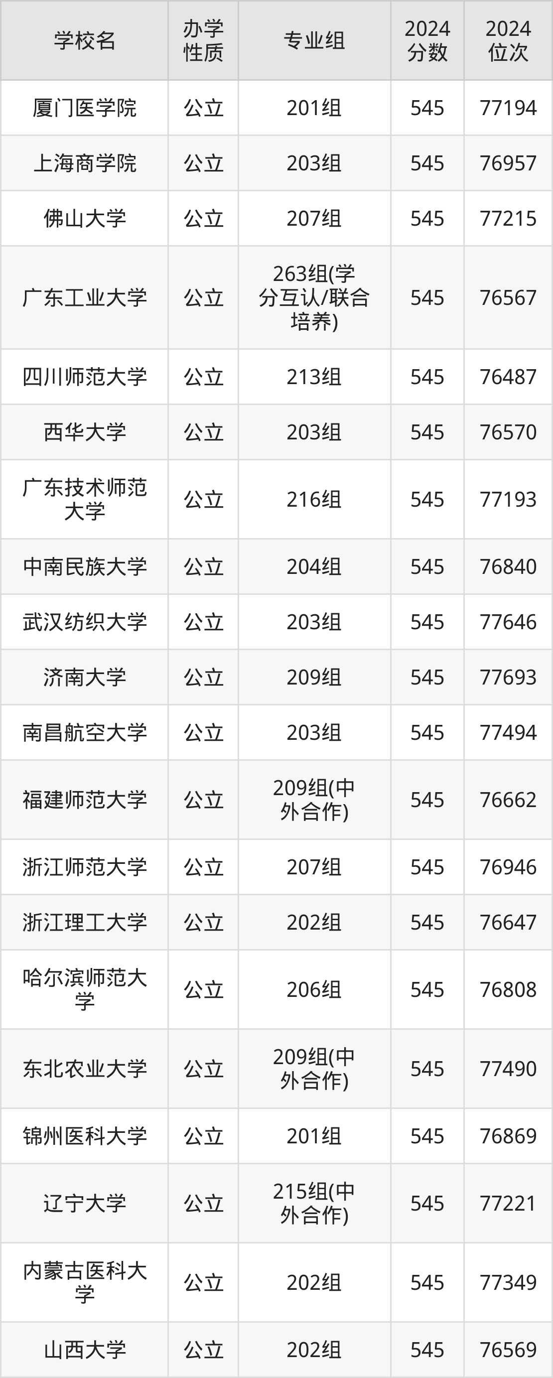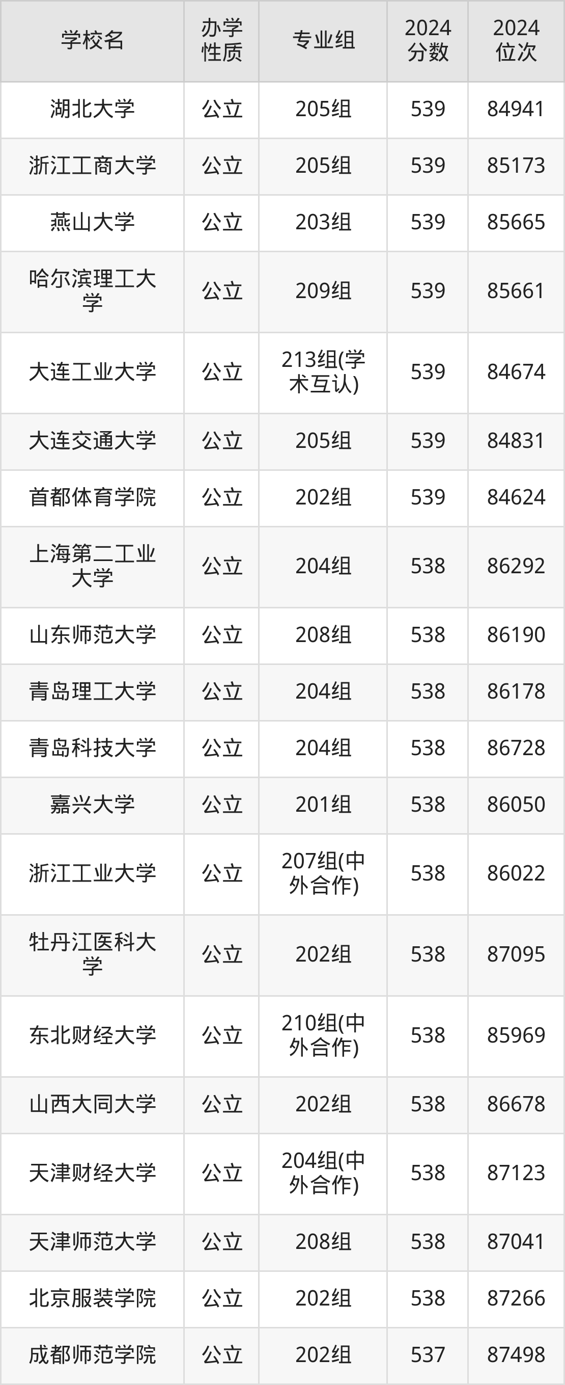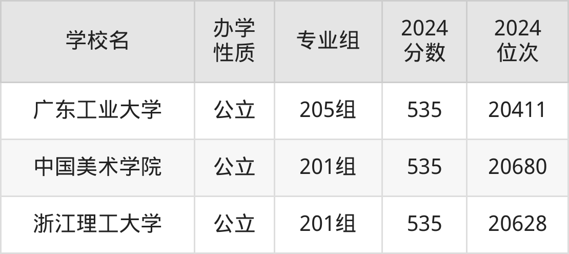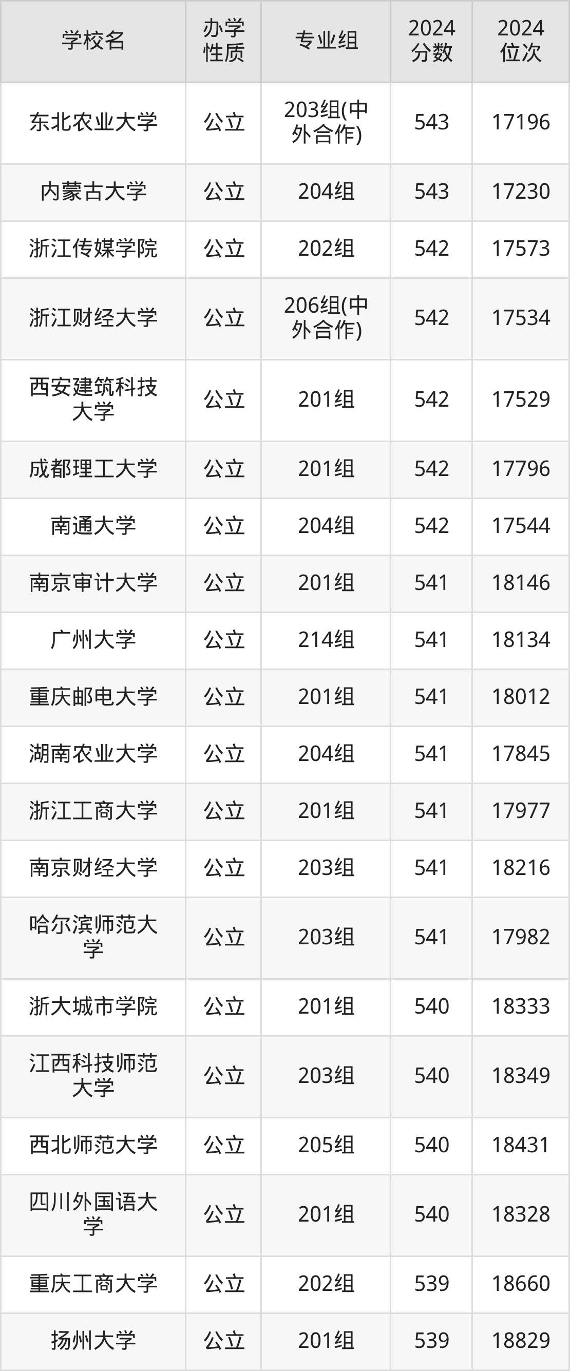 | 学校名 | 专业组 | 2024 分数 | 2024 位次 |
