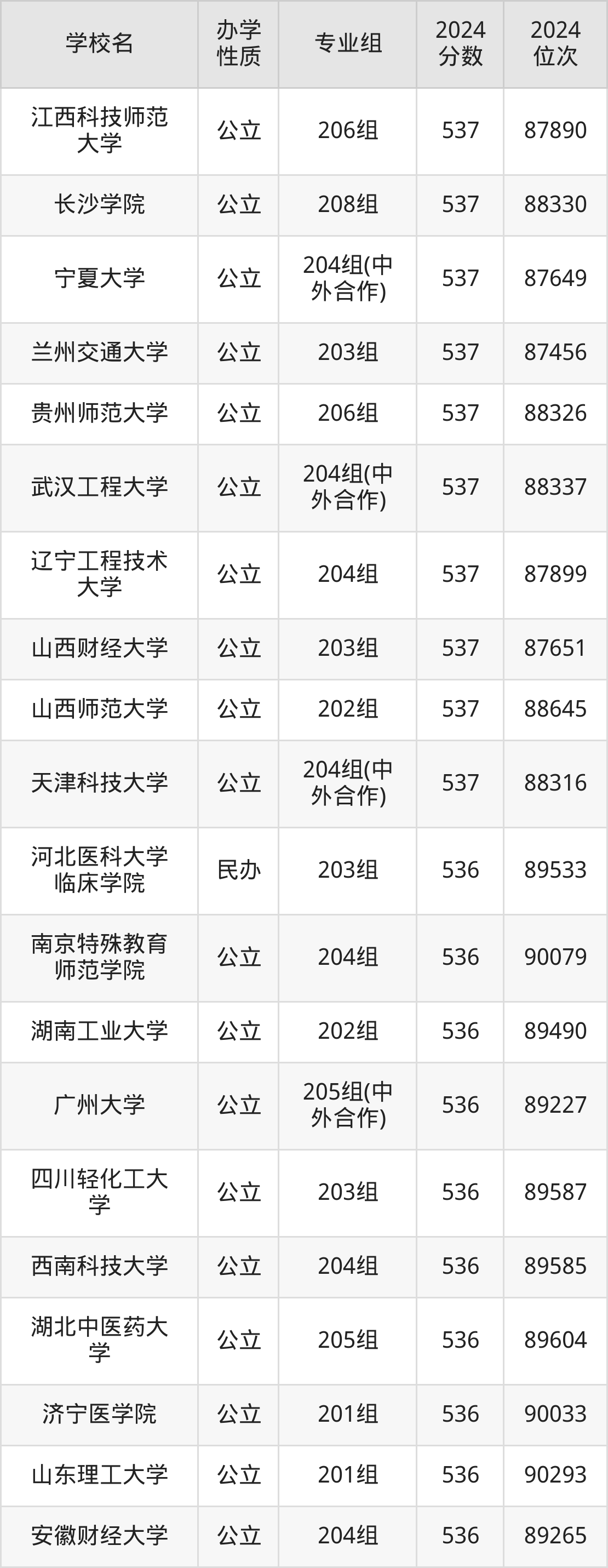 | 宁夏大学 | 204组(中 外合作) | 537 | 87649 |