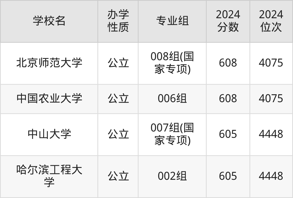 | 学校名 | 专业组 | 2024 分数 | 2024 位次 |