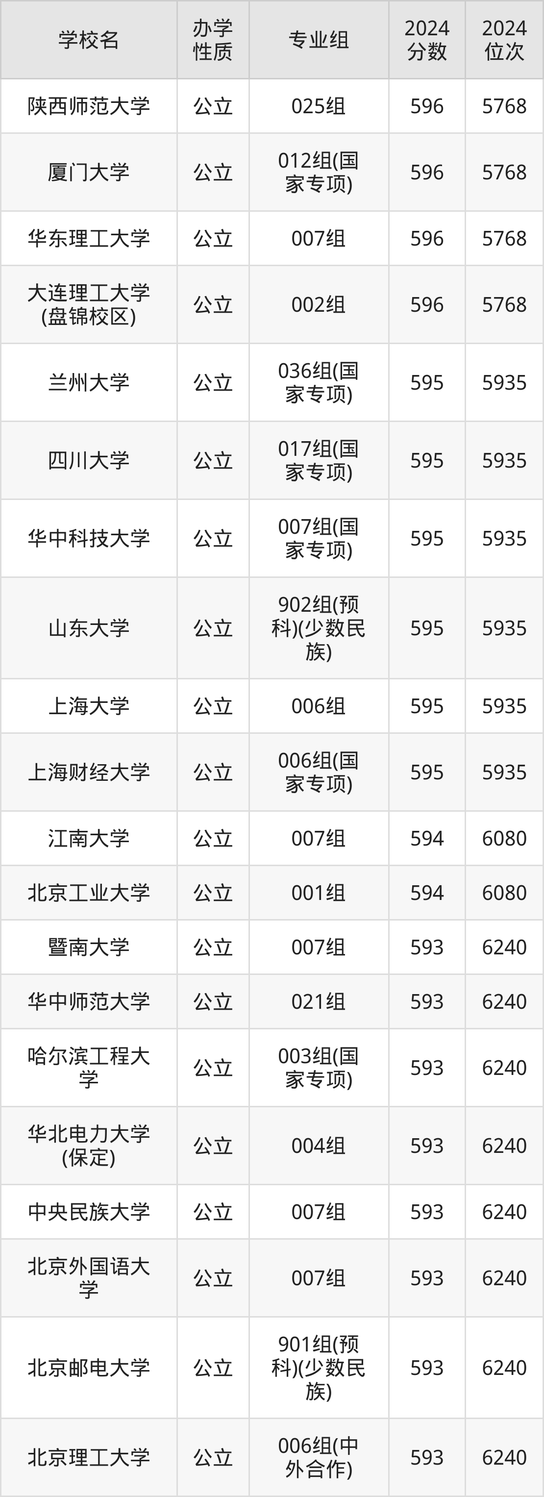 | 山东大学 | 902组(预 科)(少数民 族) | 595 | 5935 |