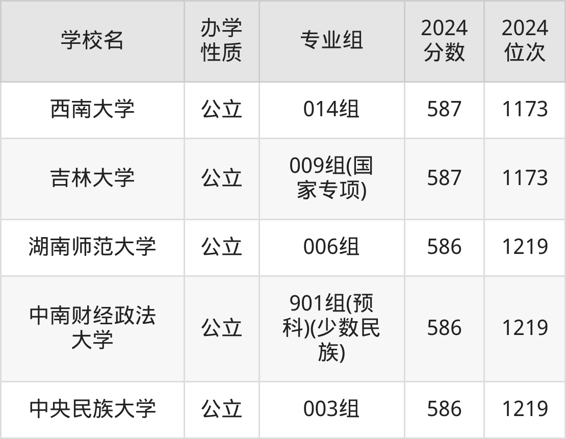 | 湖南大学 | 902组(预 科)(少数民 族) | 589 | 6950 |