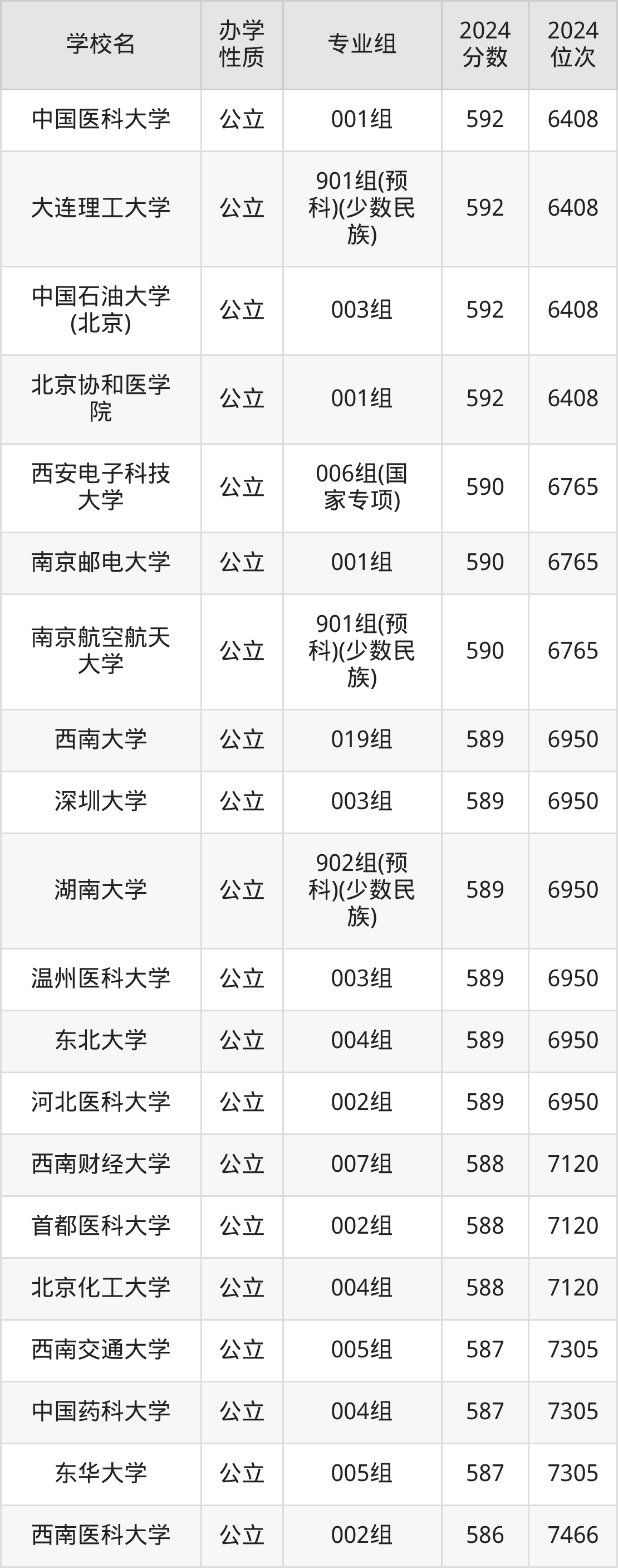 | 学校名 | 专业组 | 2024 分数 | 2024 位次 |