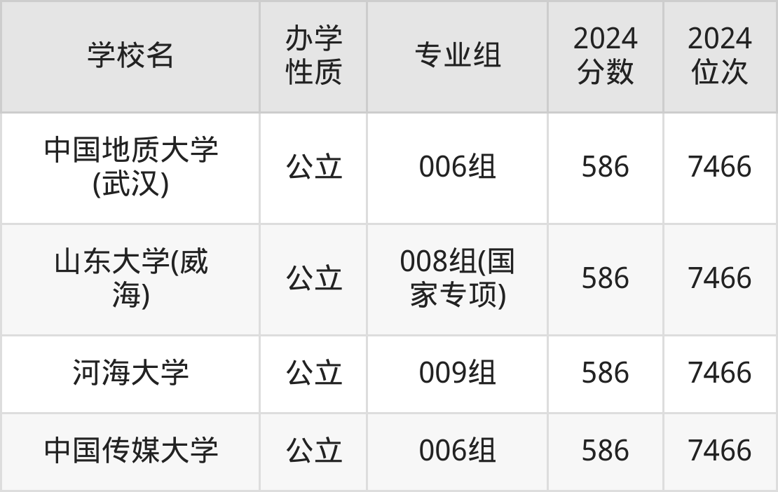 | 山东大学(威 海) | 008组(国 家专项) | 586 | 7466 |