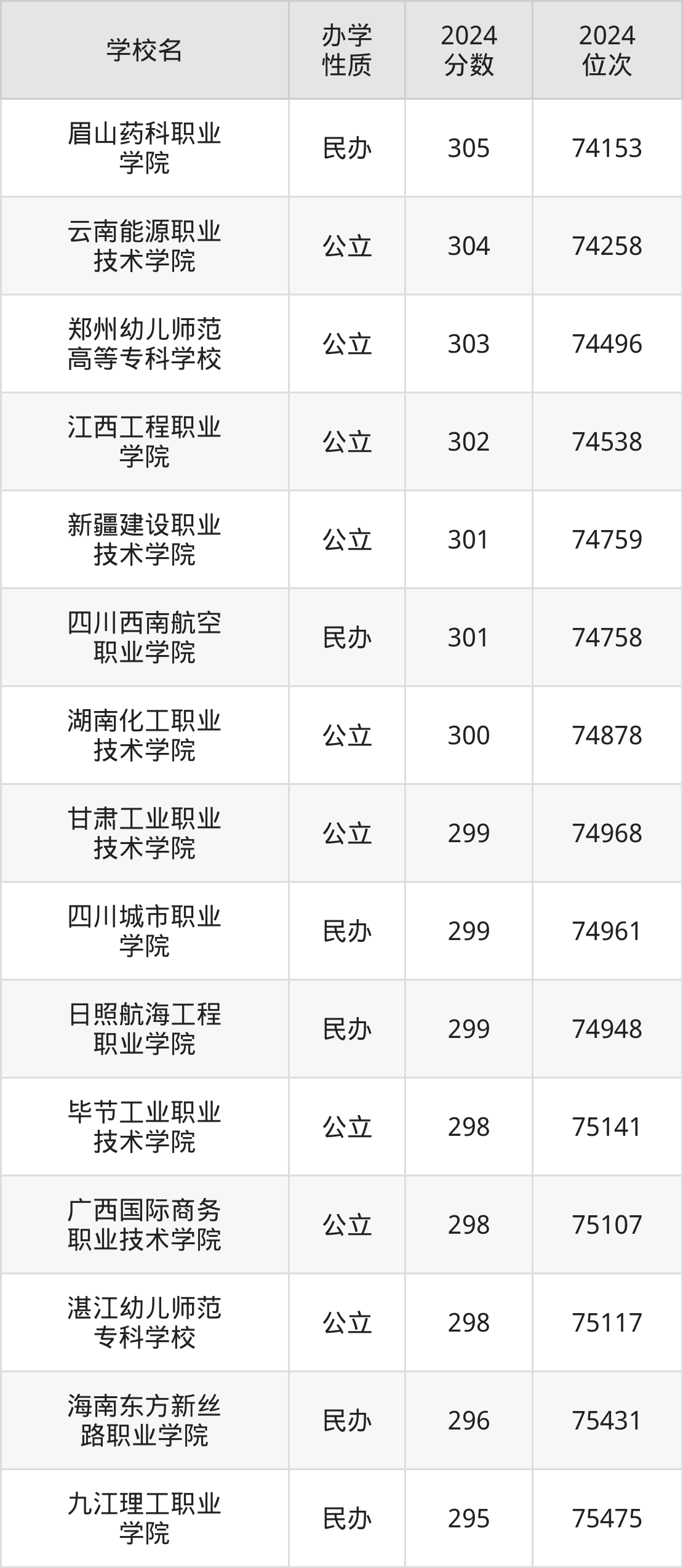 | 江西工程职业 学院 | 302 | 74538 |
