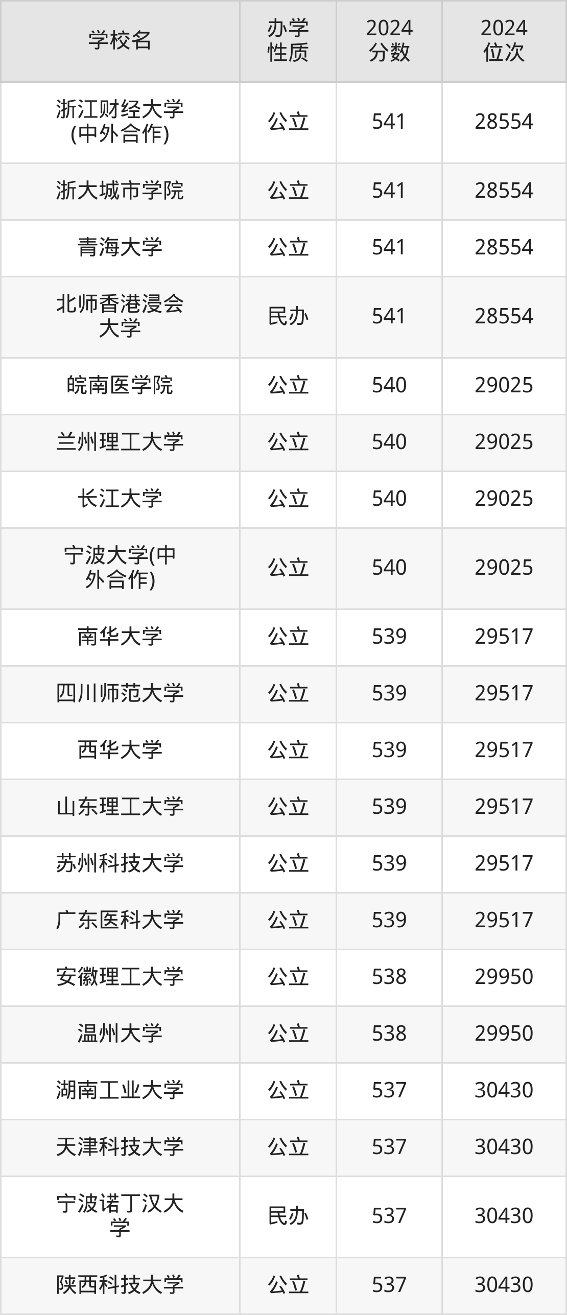 | 宁波大学(中 外合作) | 540 | 29025 |