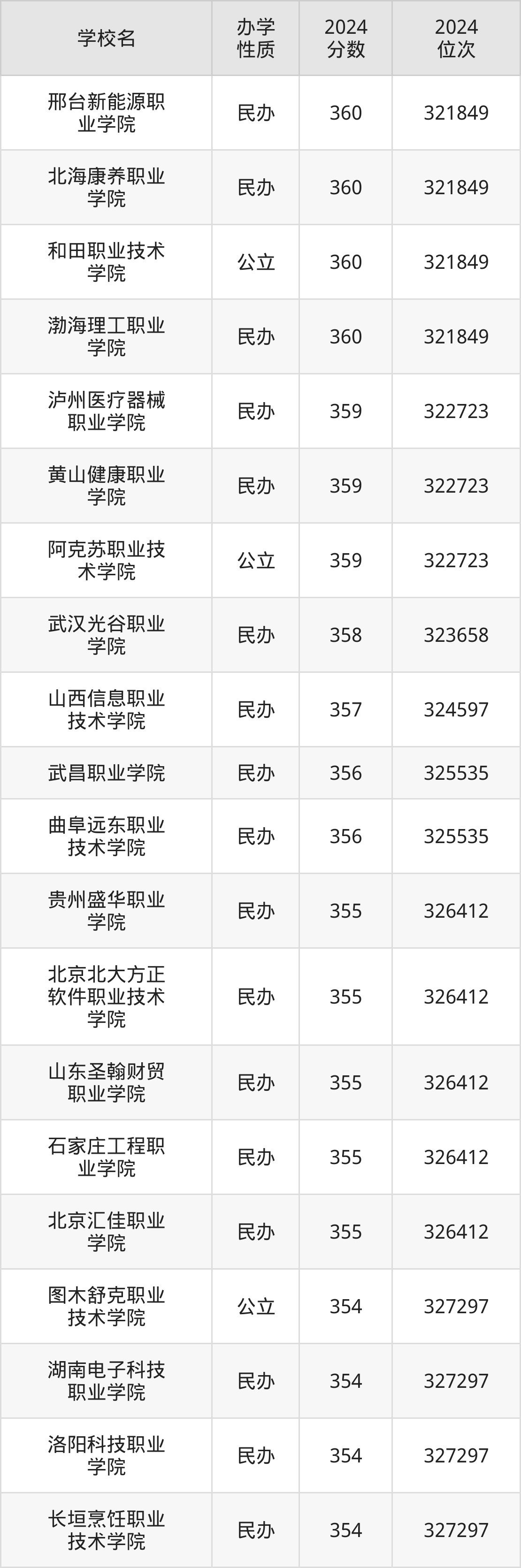 | 邢台新能源职 业学院 | 360 | 321849 |