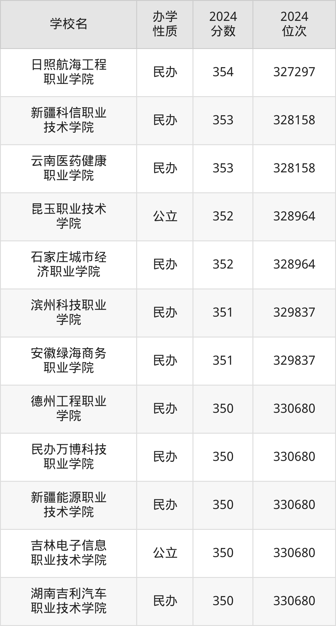 | 德州工程职业 学院 | 350 | 330680 |