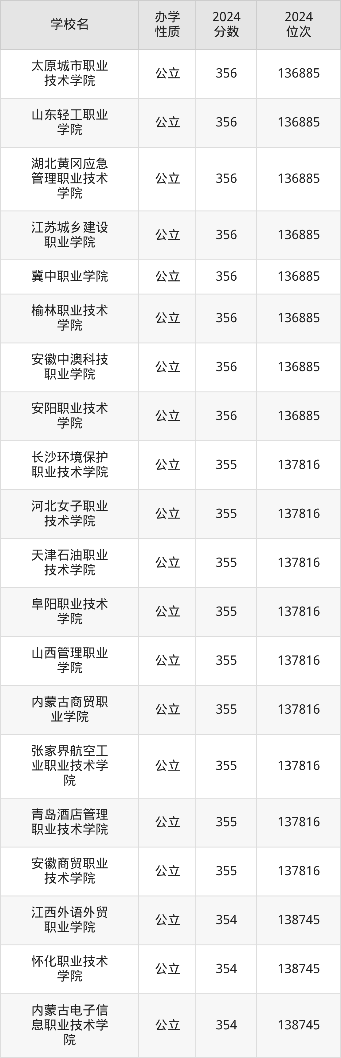 | 山西管理职业 学院 | 355 | 137816 |