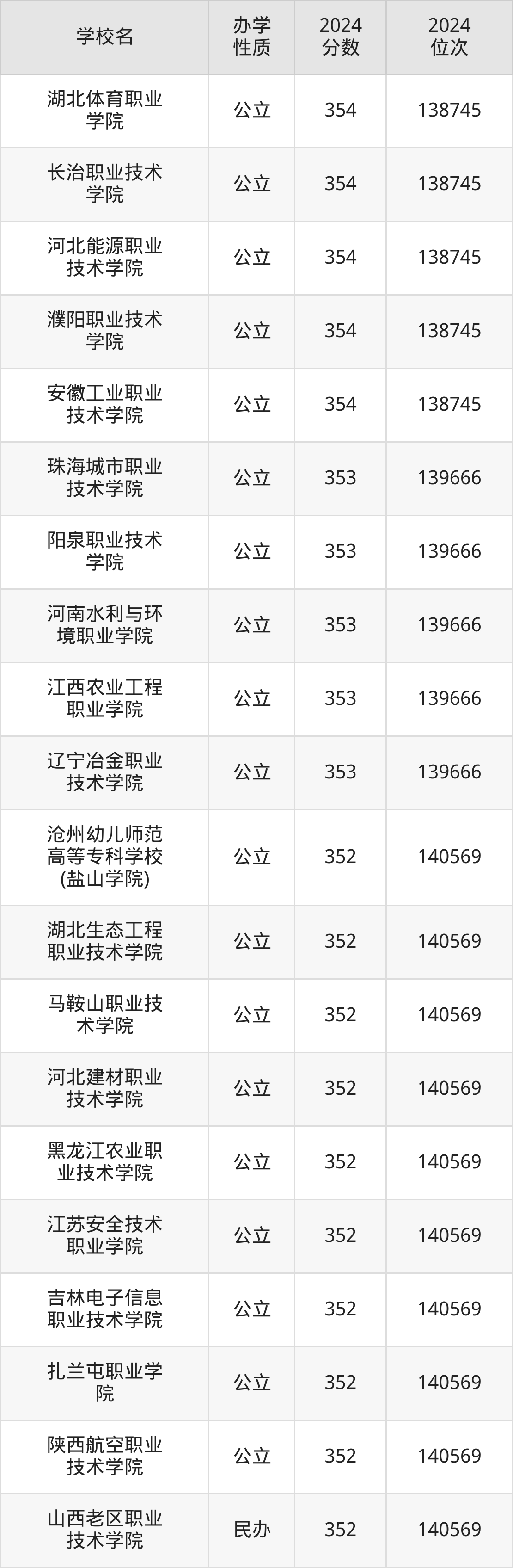 | 河北能源职业 技术学院 | 354 | 138745 |