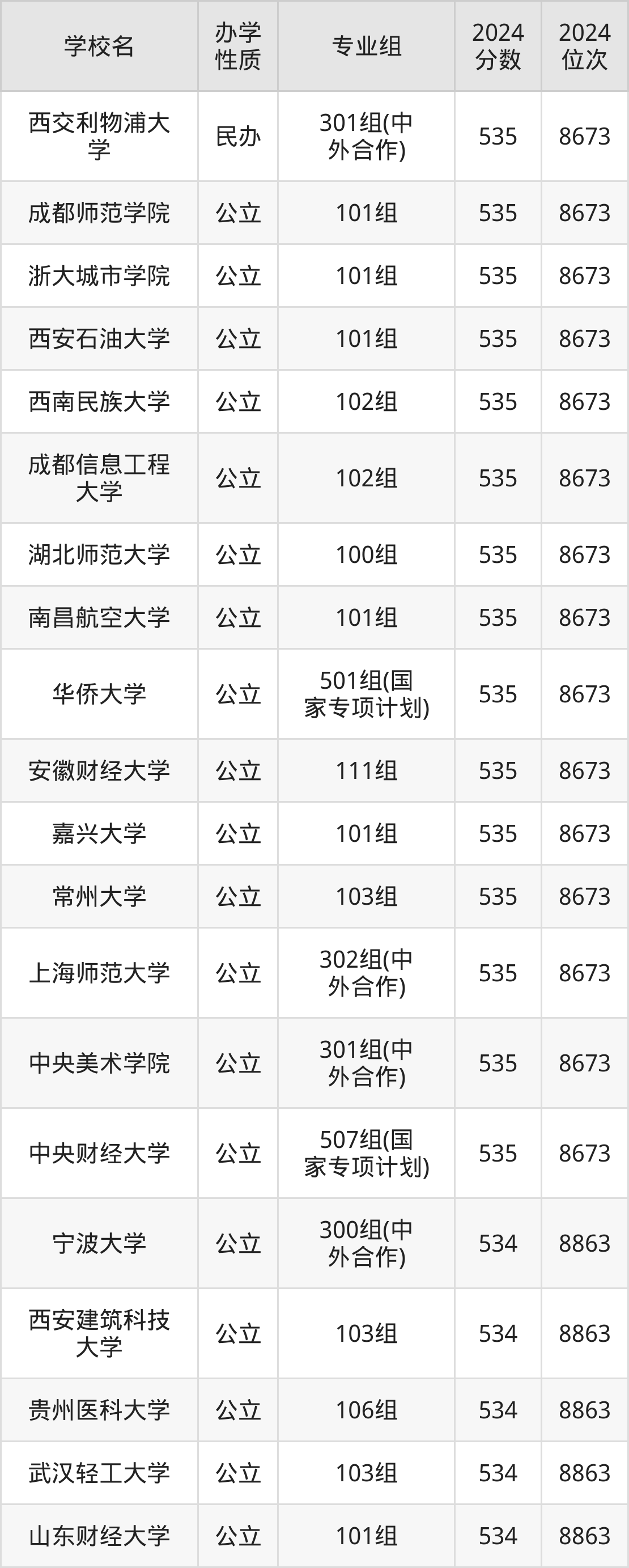 | 西交利物浦大 学 | 301组(中 外合作) | 535 | 8673 |
