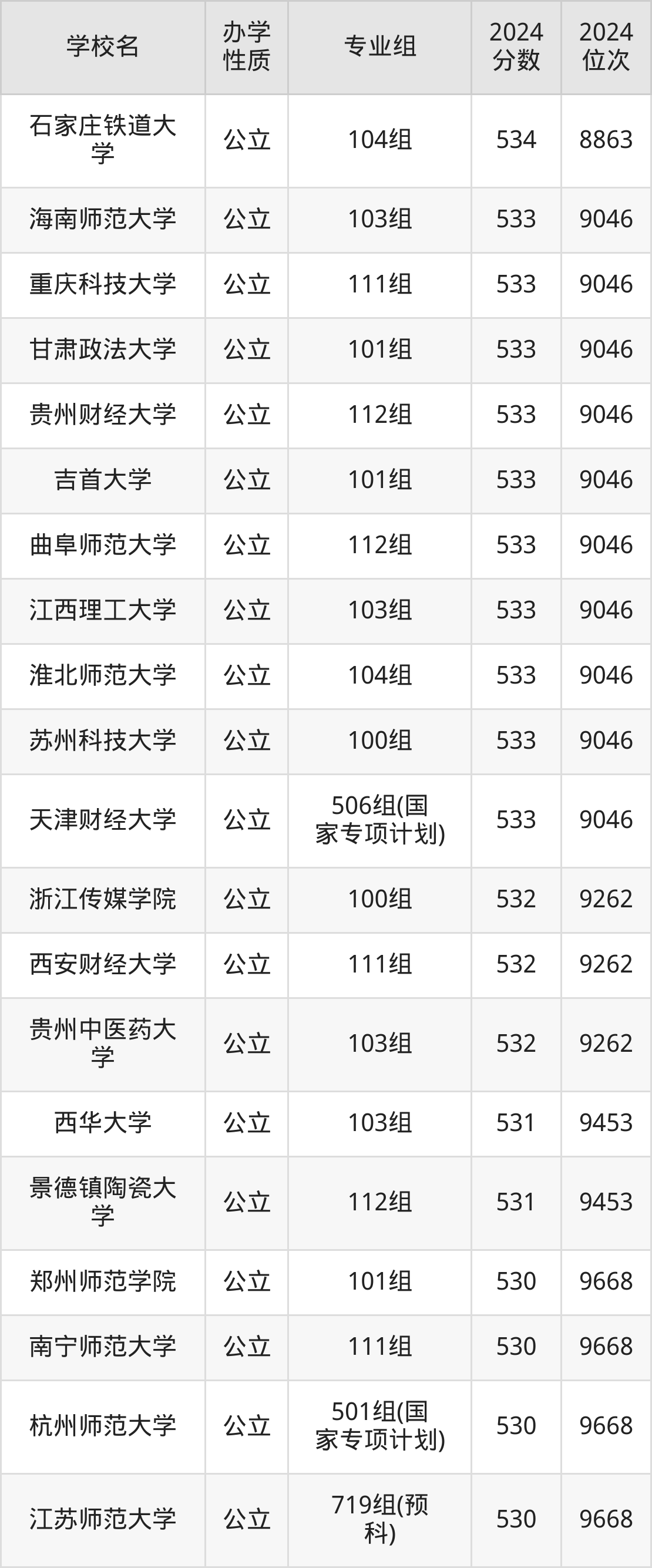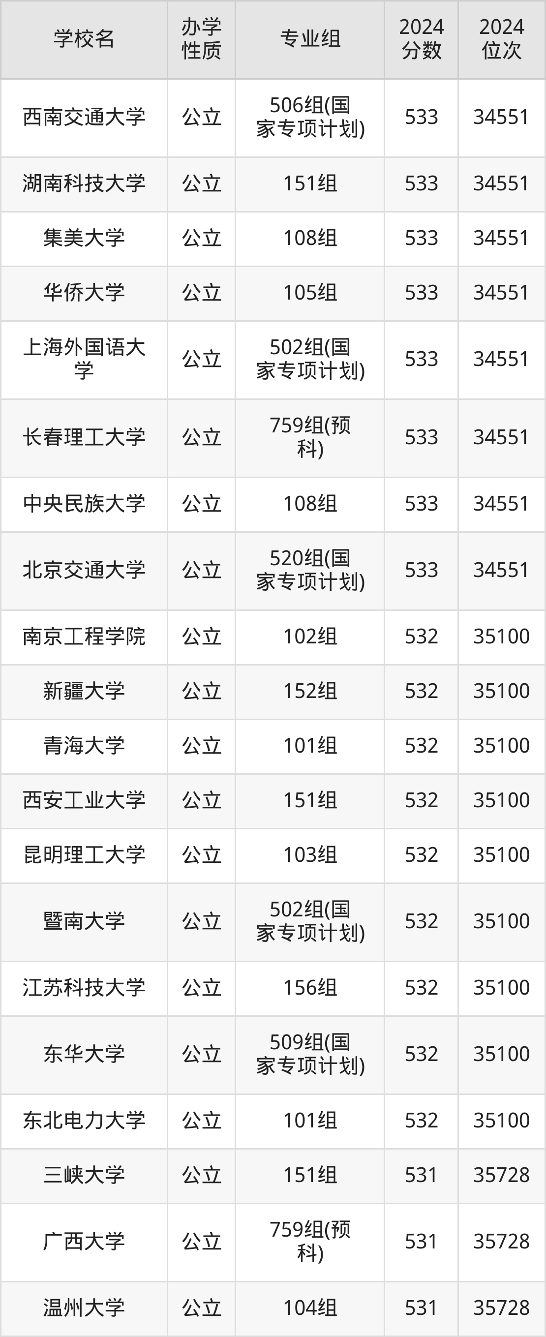 | 学校名 | 专业组 | 2024 分数 | 2024 位次 |