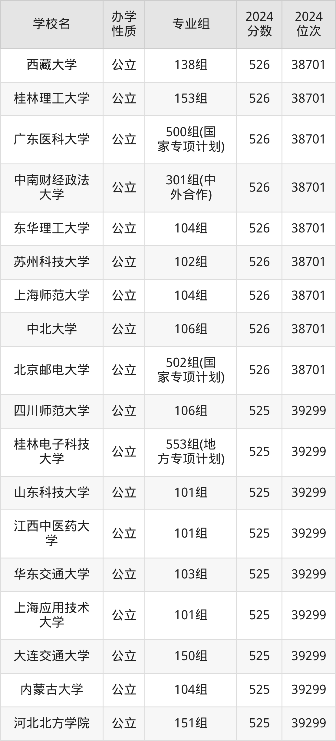 | 北京邮电大学 | 502组(国 家专项计划) | 526 | 38701 |