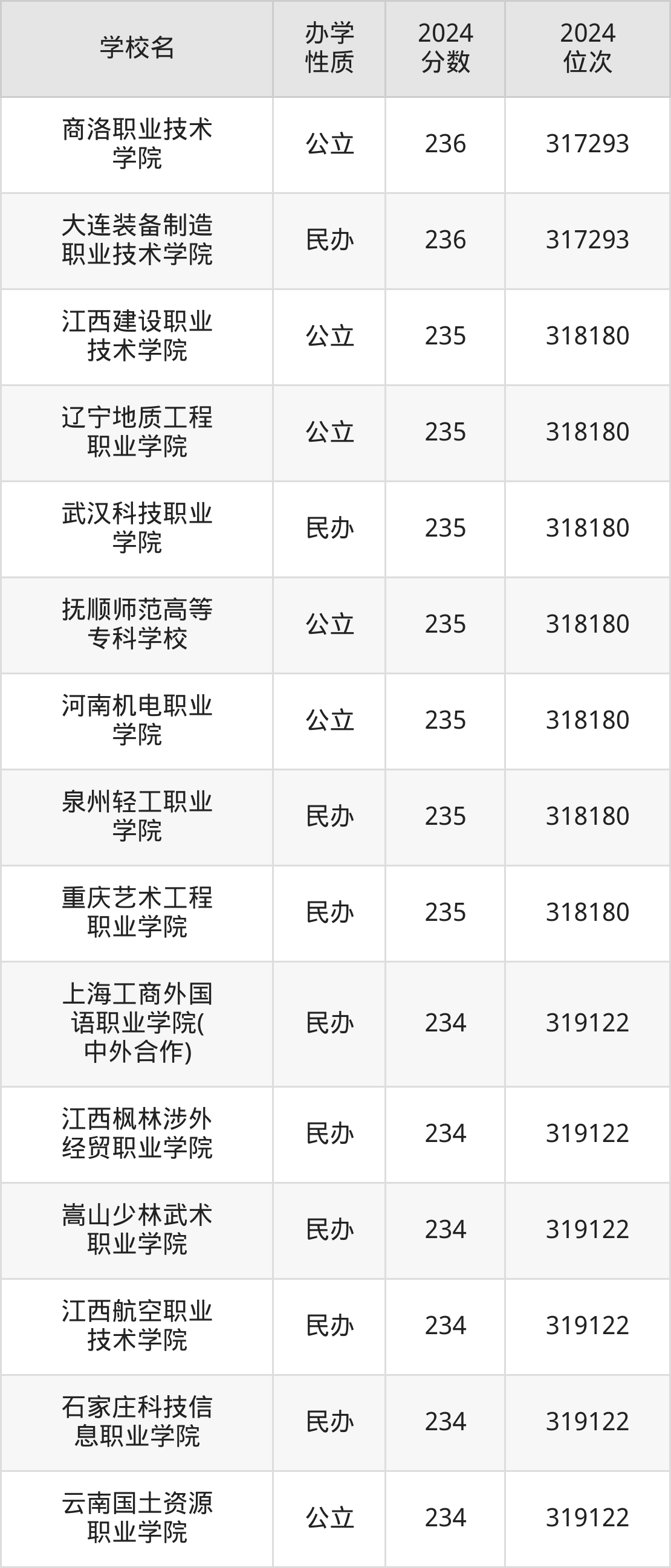 | 江西建设职业 技术学院 | 235 | 318180 |