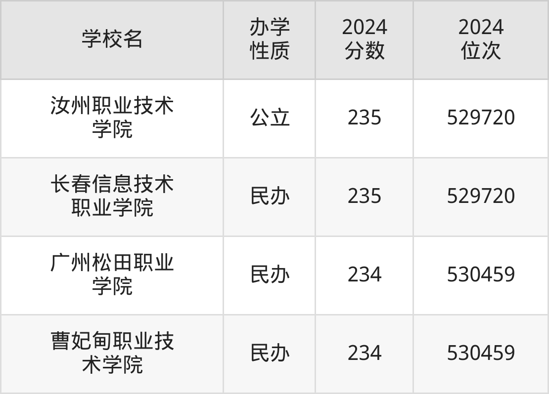 | 长春信息技术 职业学院 | 235 | 529720 |
