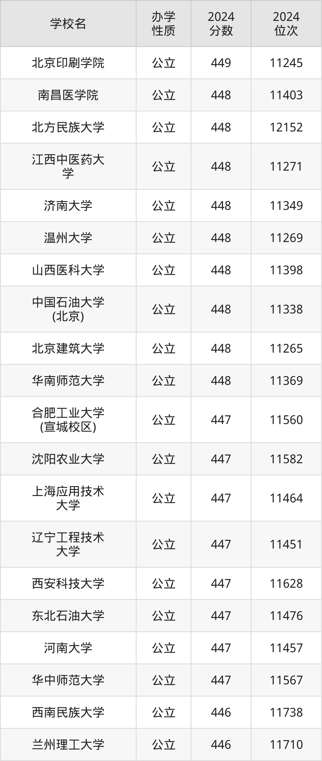 宁夏444分左右的考生可以上北京印刷学院、南昌医学院、北方民族大学等院校,刚好在444分的院校有中国地质大学(武汉)、贵州大学、北方工业大学。