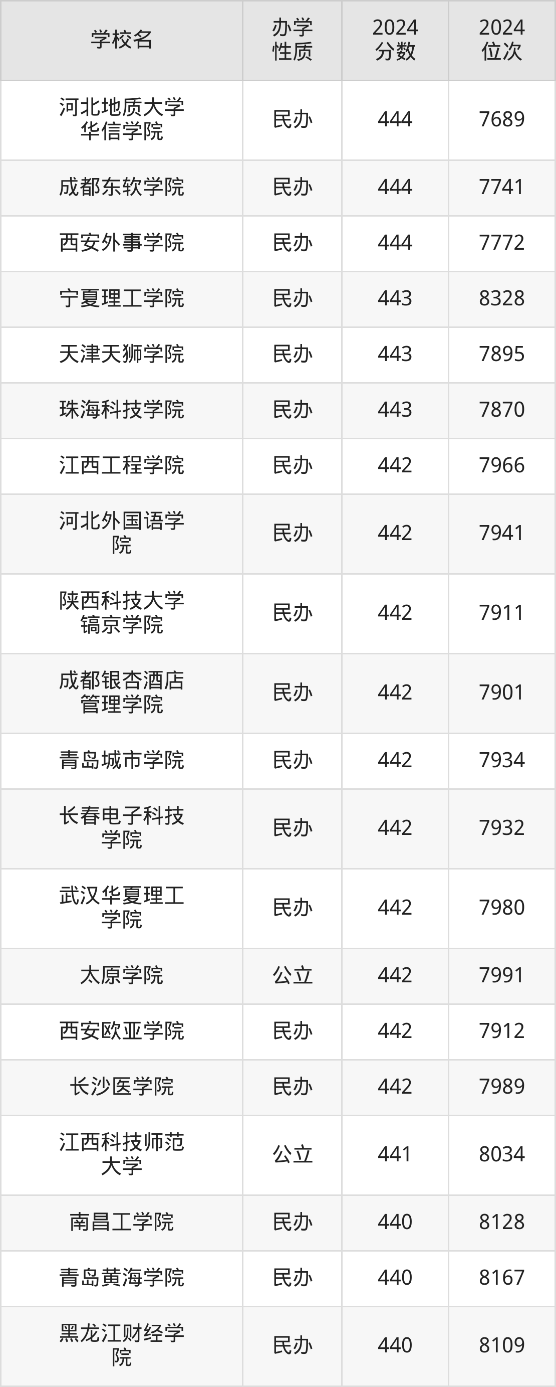 | 河北地质大学 华信学院 | 444 | 7689 |