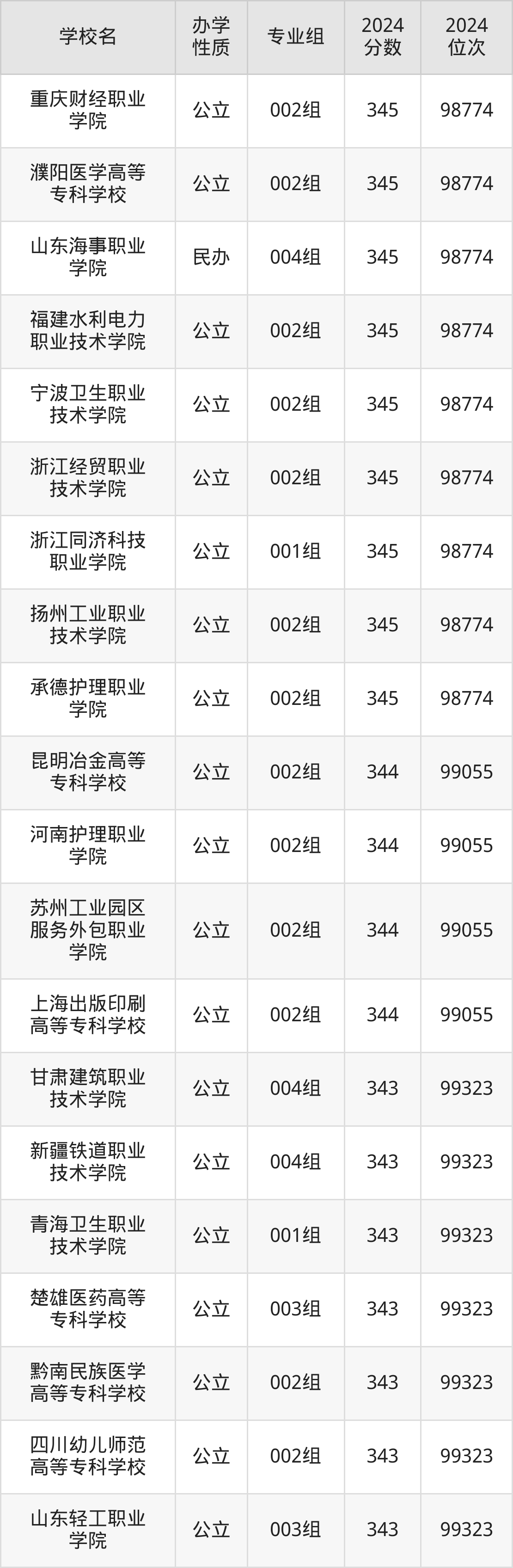 | 黔南民族医学 高等专科学校 | 002组 | 343 | 99323 |