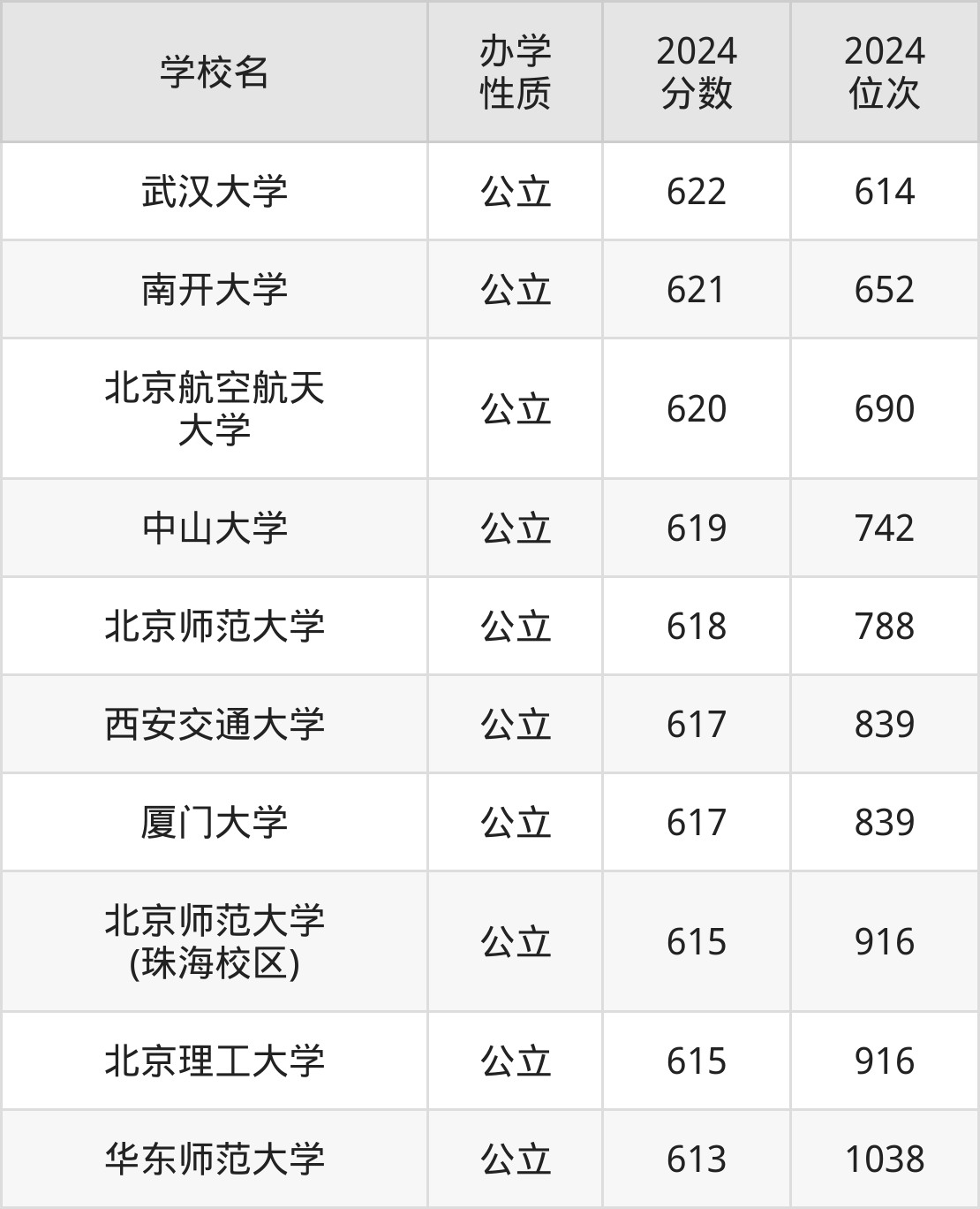 | 北京师范大学 (珠海校区) | 615 | 916 |
