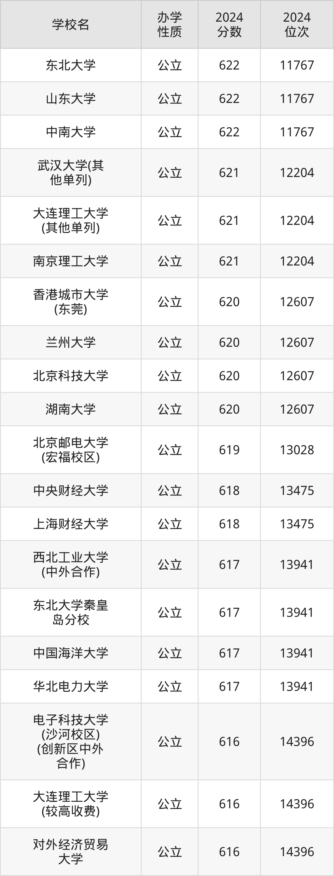 2024年河南理科618分考生能上山东大学、中南大学、东北大学、兰州大学、湖南大学等8所985院校,具体录取分数线及位次为: