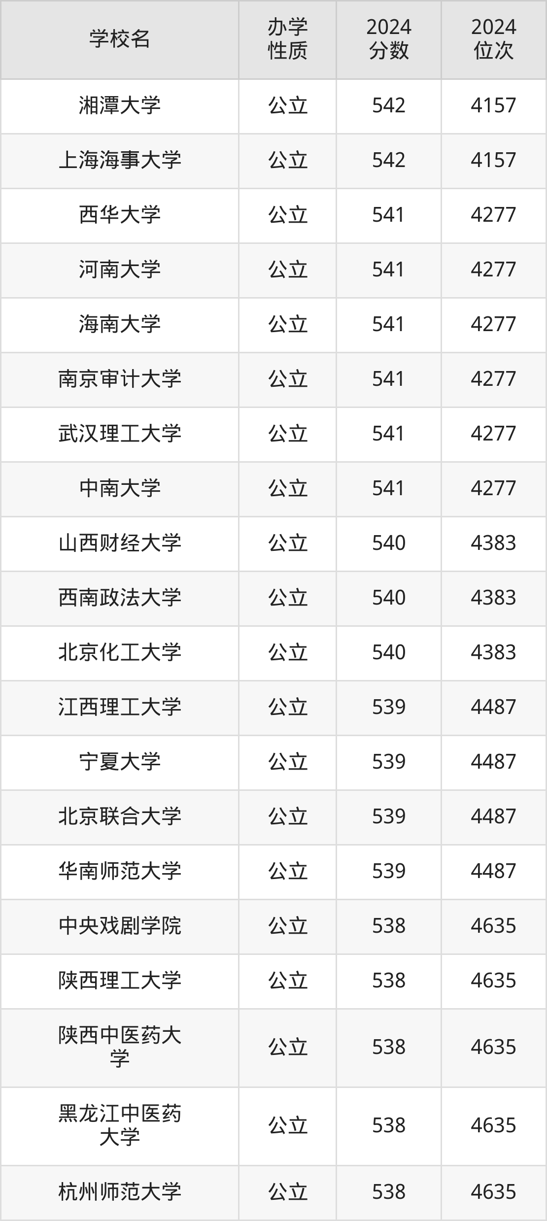 | 辽宁大学(中 外合作) | 539 | 27961 |