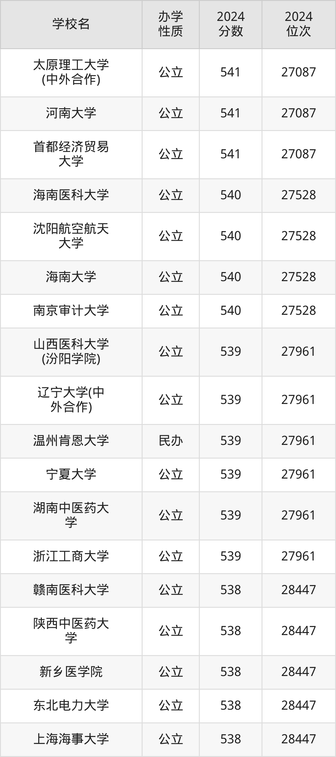 为了方便2025届考生了解自己能上哪些大学,本文也整理出了山西543分左右能上的所有大学名单,供2025年考生参考。