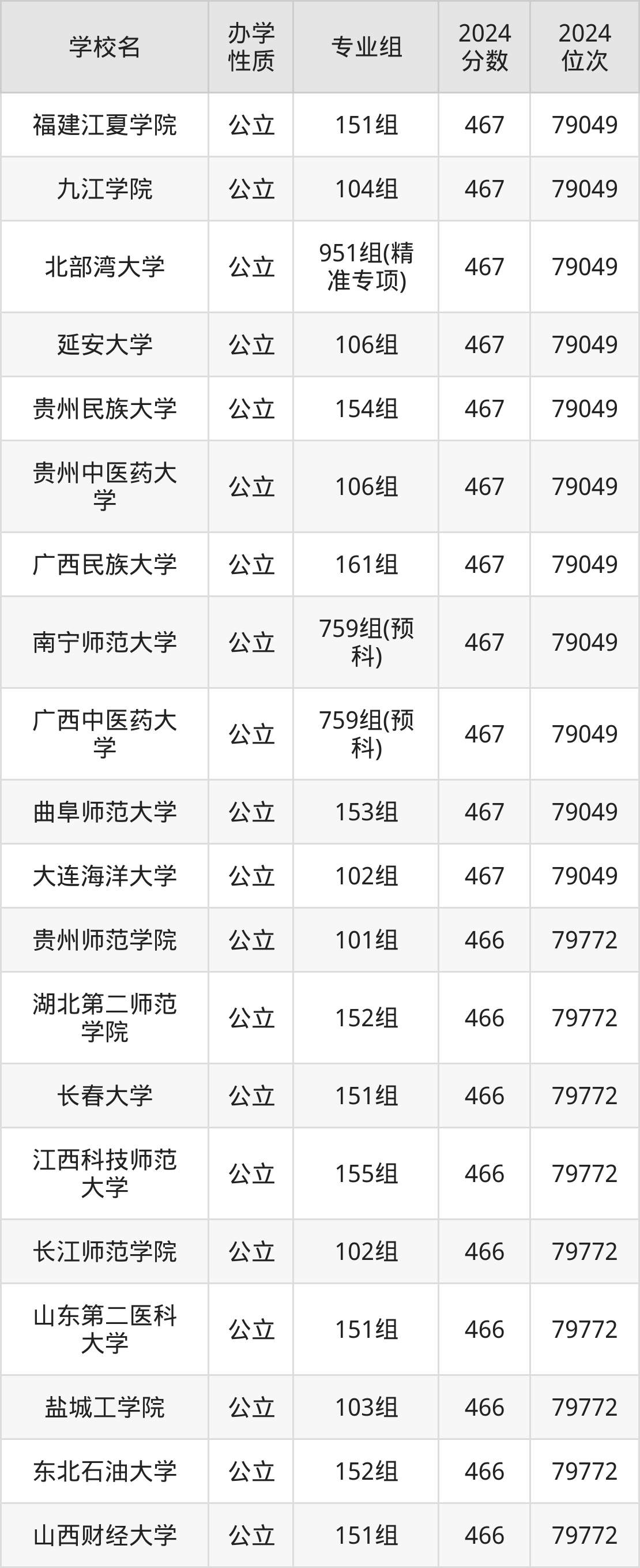 | 福建江夏学院 | 719组(预 科) | 467 | 25318 |