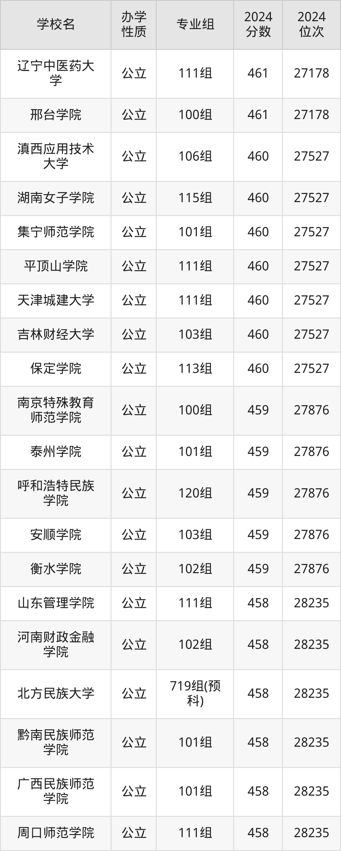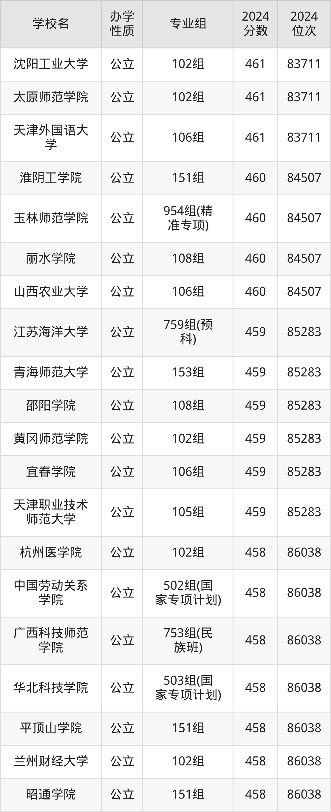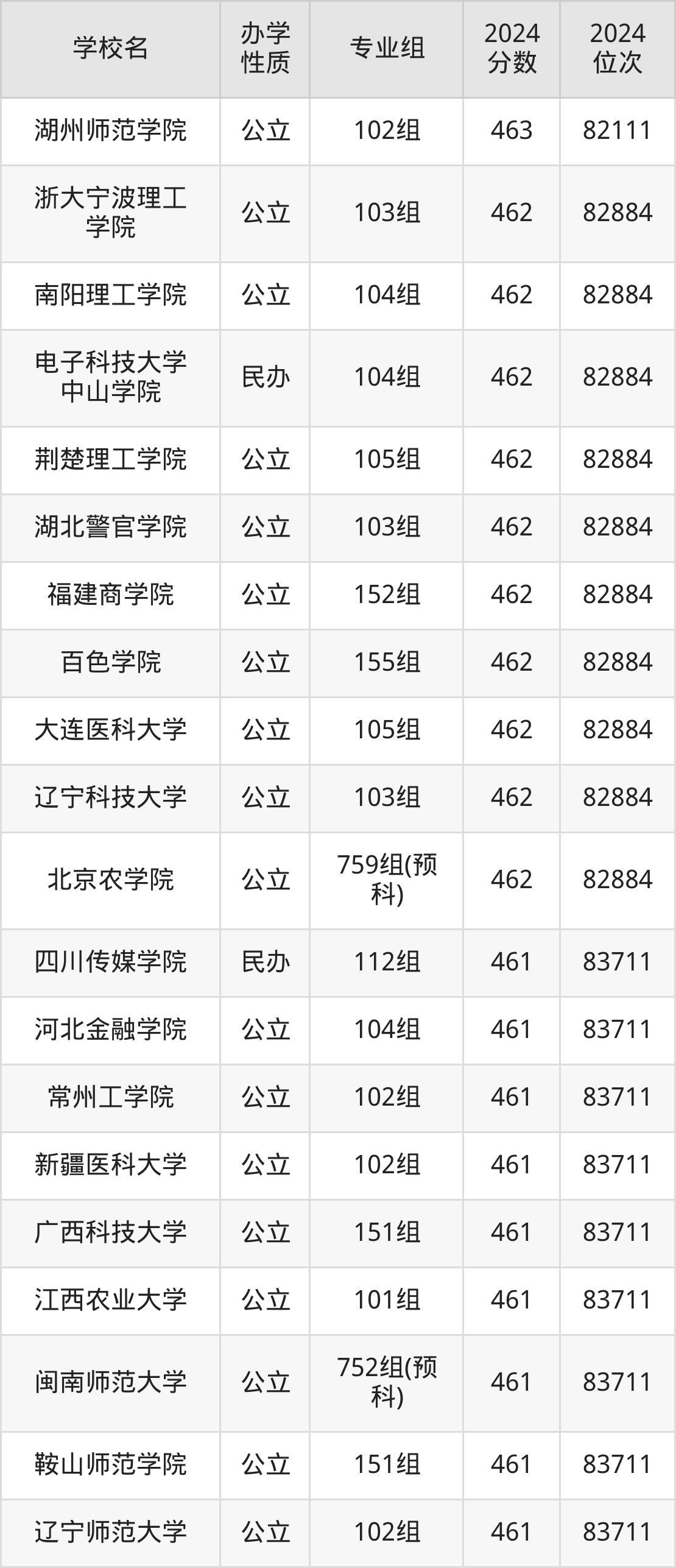 | 学校名 | 专业组 | 2024 分数 | 2024 位次 |