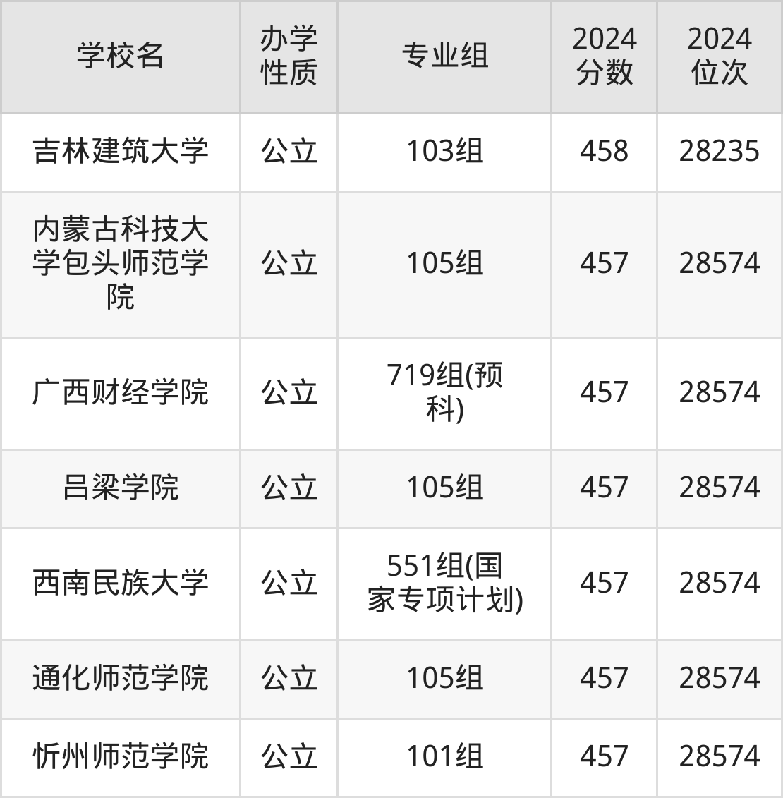 | 北方民族大学 | 719组(预 科) | 458 | 28235 |