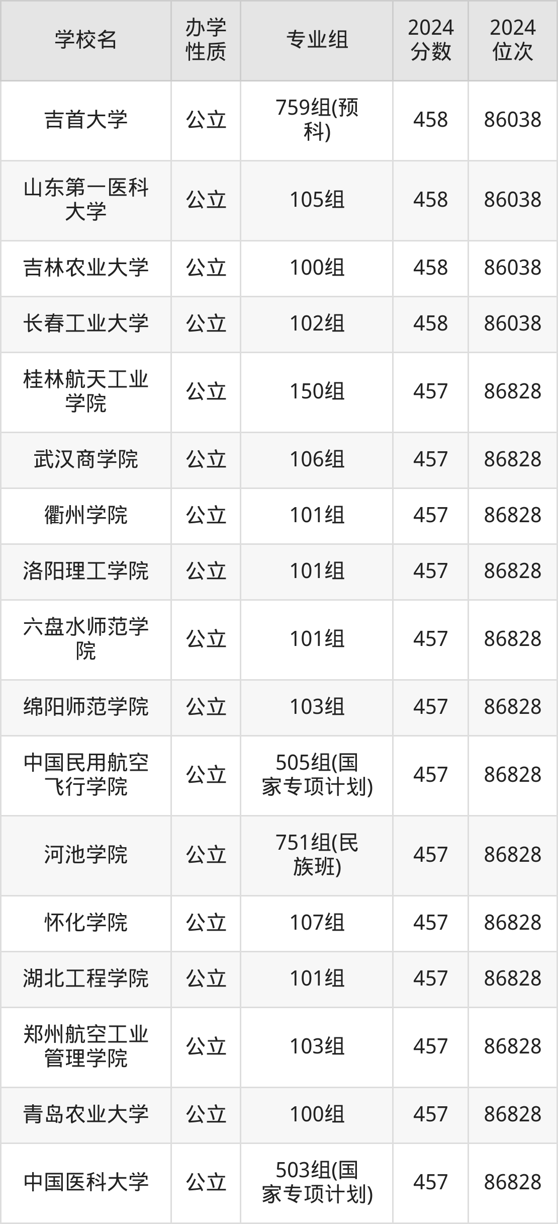 | 中国医科大学 | 503组(国 家专项计划) | 457 | 86828 |