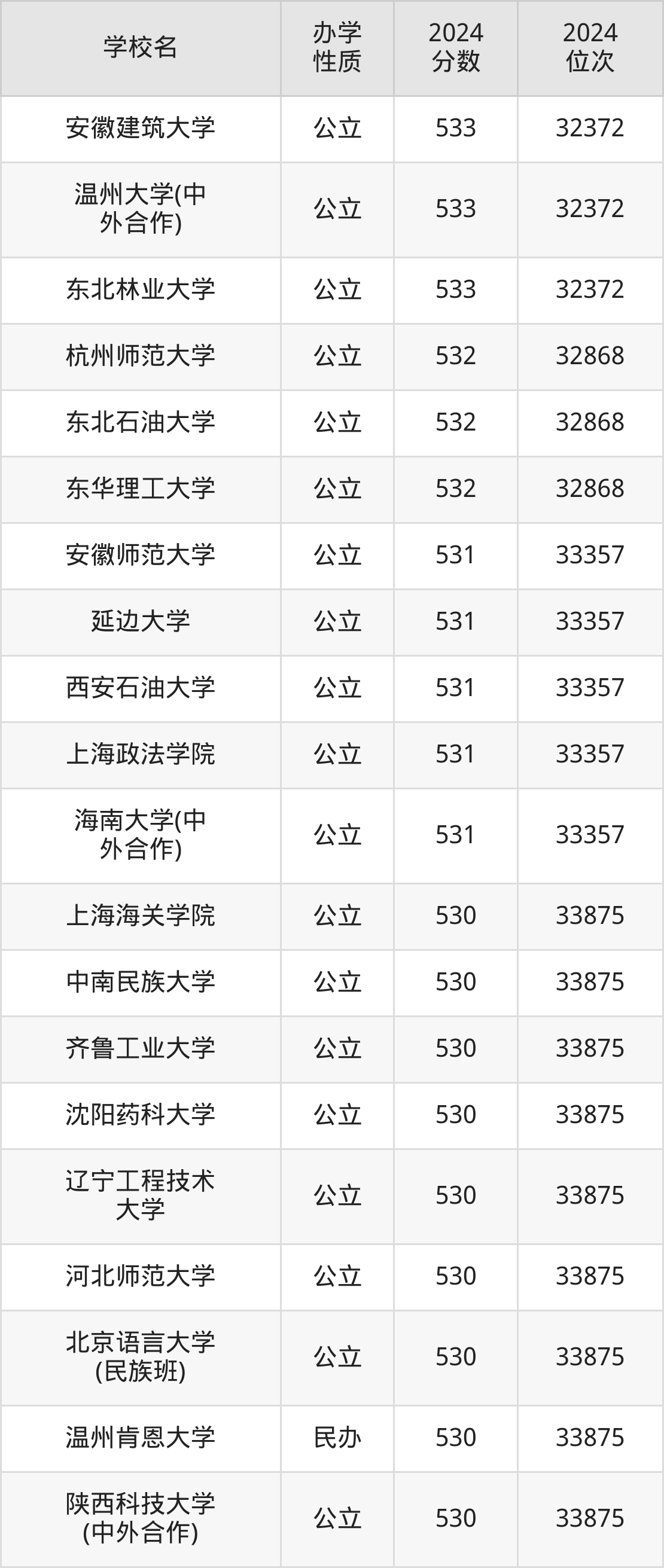 | 北京语言大学 (民族班) | 530 | 33875 |