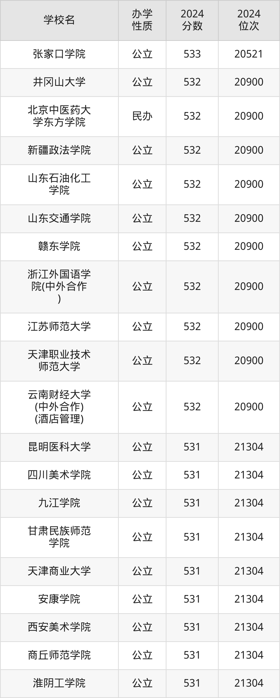 | 云南财经大学 (中外合作) (酒店管理) | 532 | 20900 |