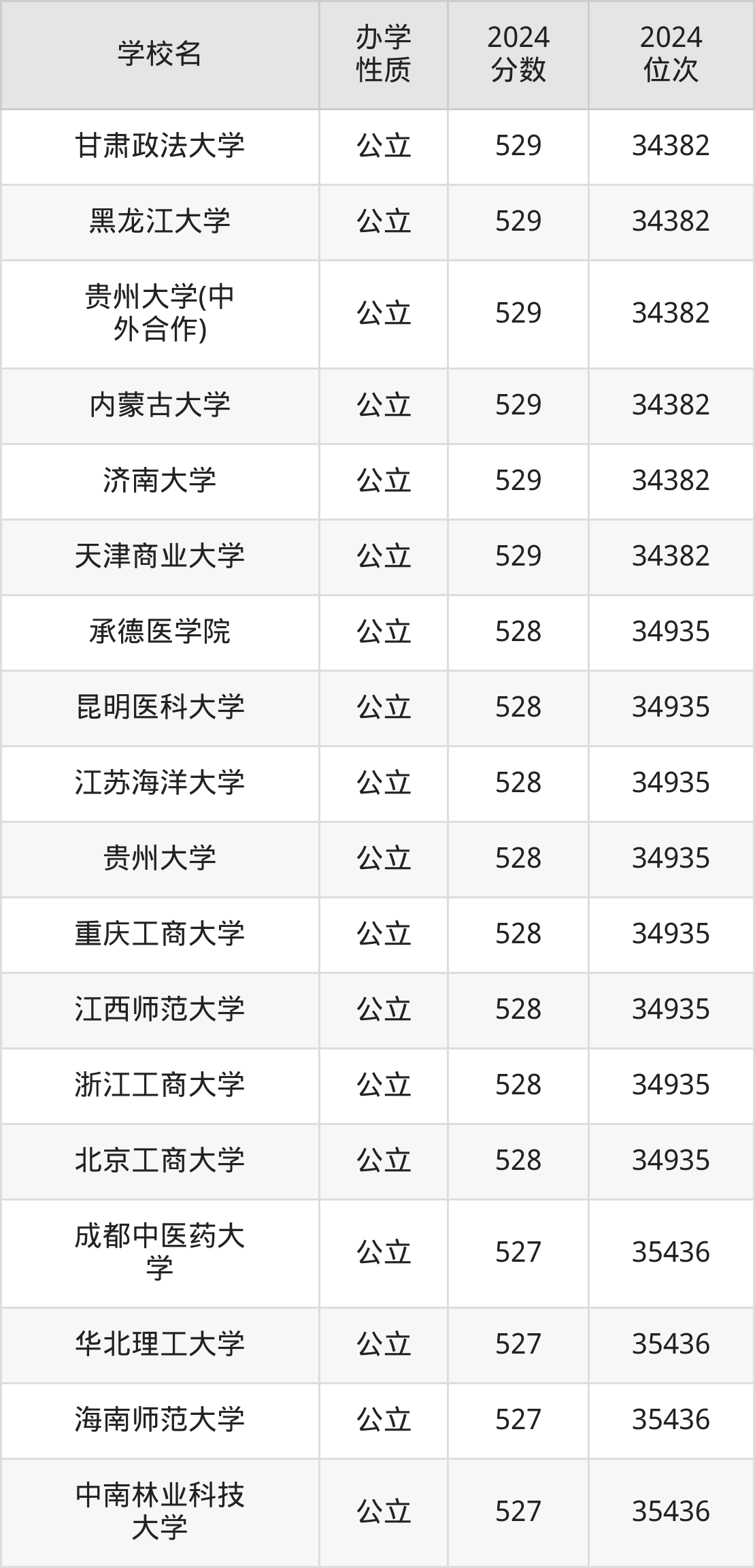 | 贵州大学(中 外合作) | 529 | 34382 |