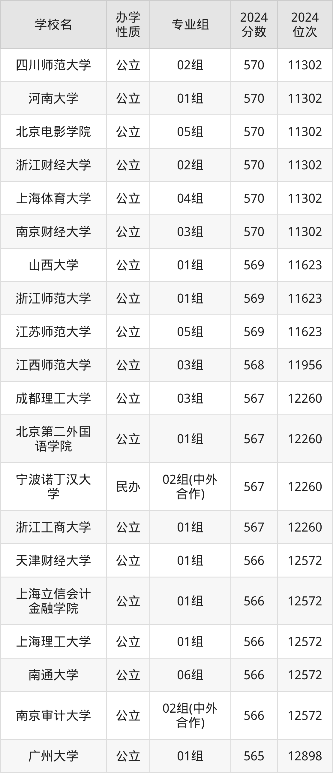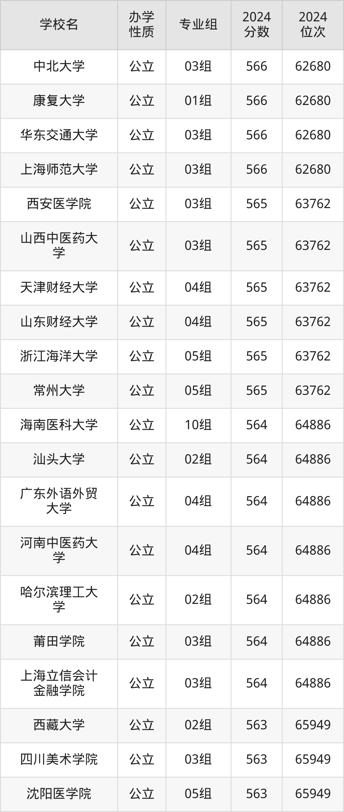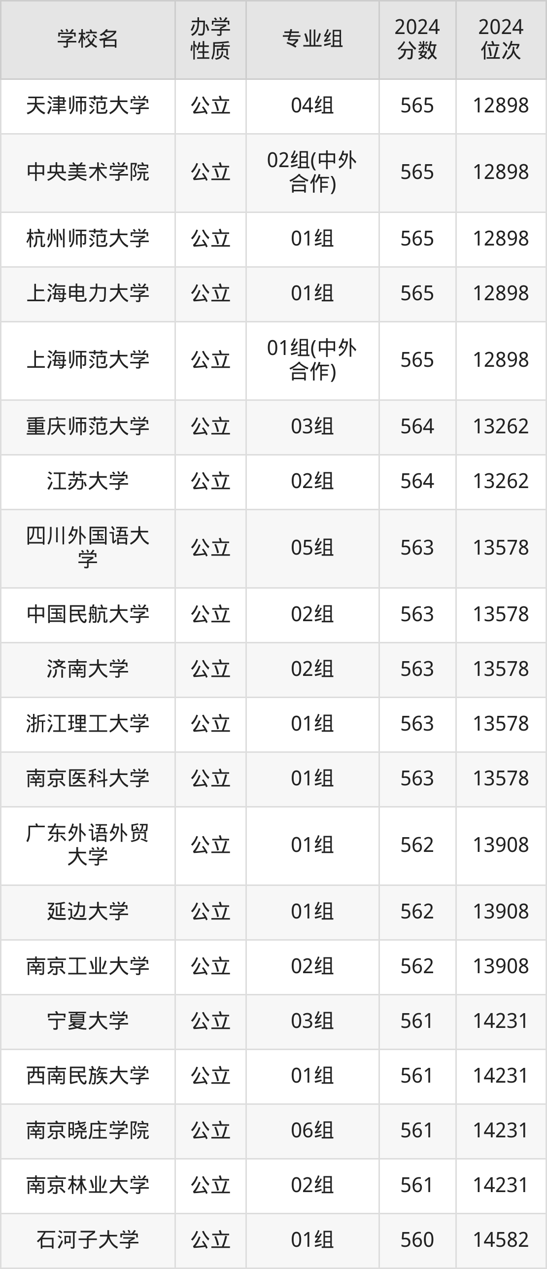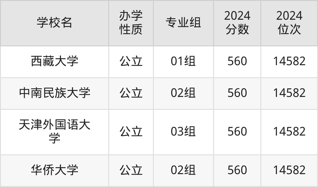 | 学校名 | 专业组 | 2024 分数 | 2024 位次 |