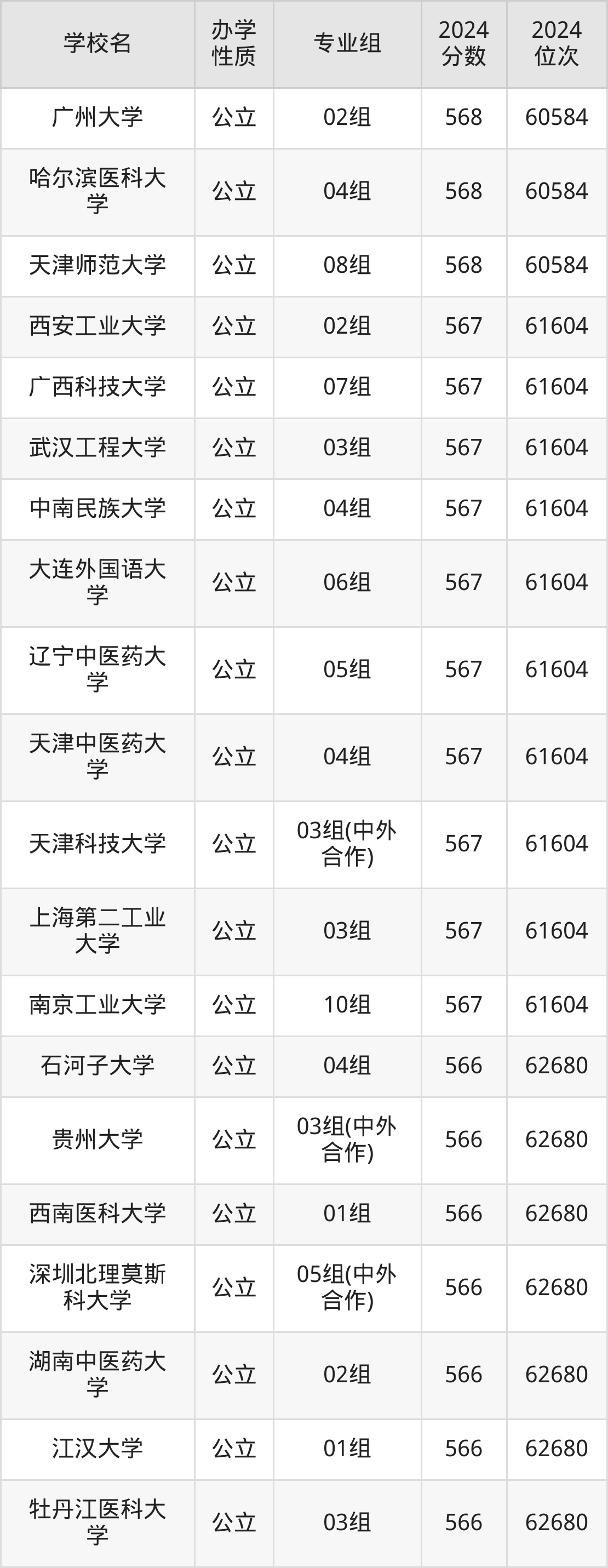 | 贵州大学 | 03组(中外 合作) | 566 | 62680 |