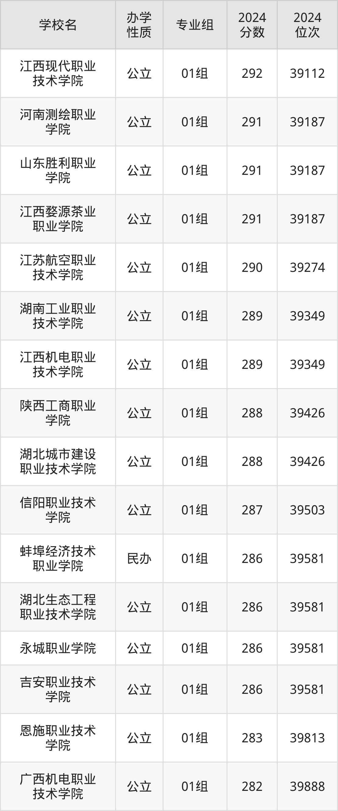 | 江西现代职业 技术学院 | 01组 | 292 | 39112 |