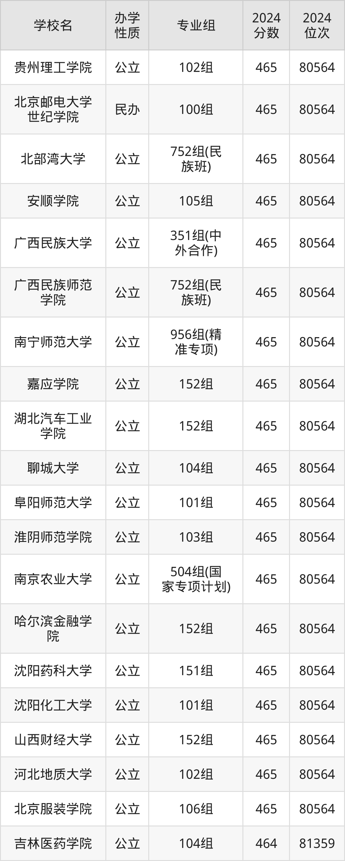 | 广西民族大学 | 551组(国 家专项计划) | 460 | 84507 |
