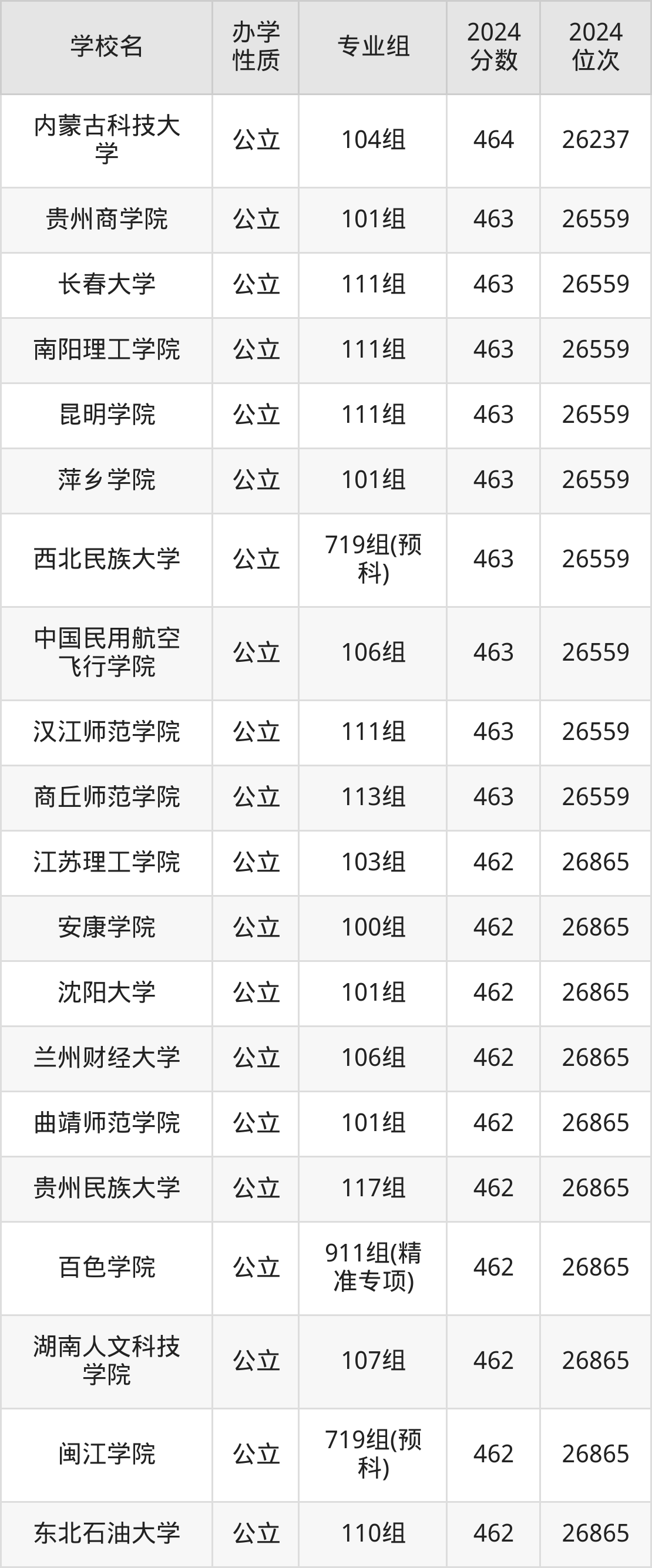 | 西北民族大学 | 719组(预 科) | 463 | 26559 |
