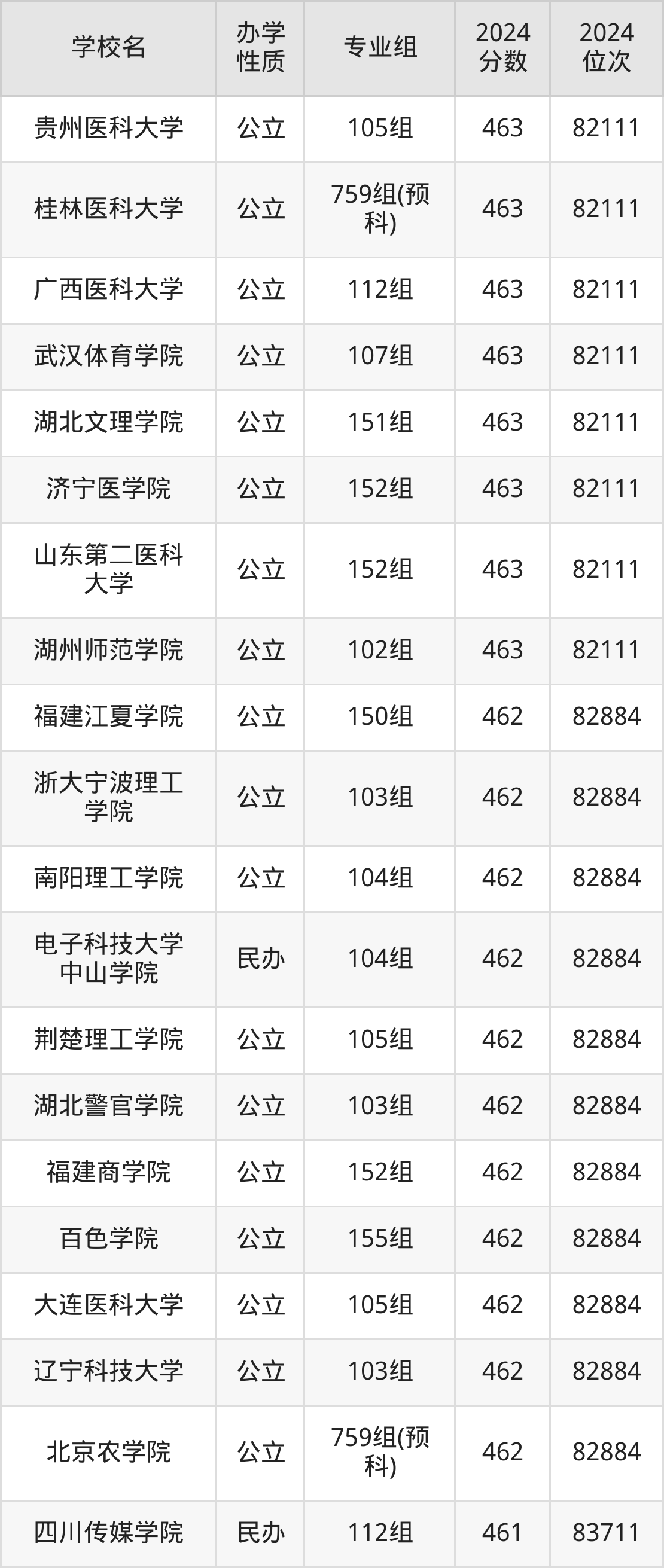 | 桂林医科大学 | 758组(预 科) | 456 | 87608 |