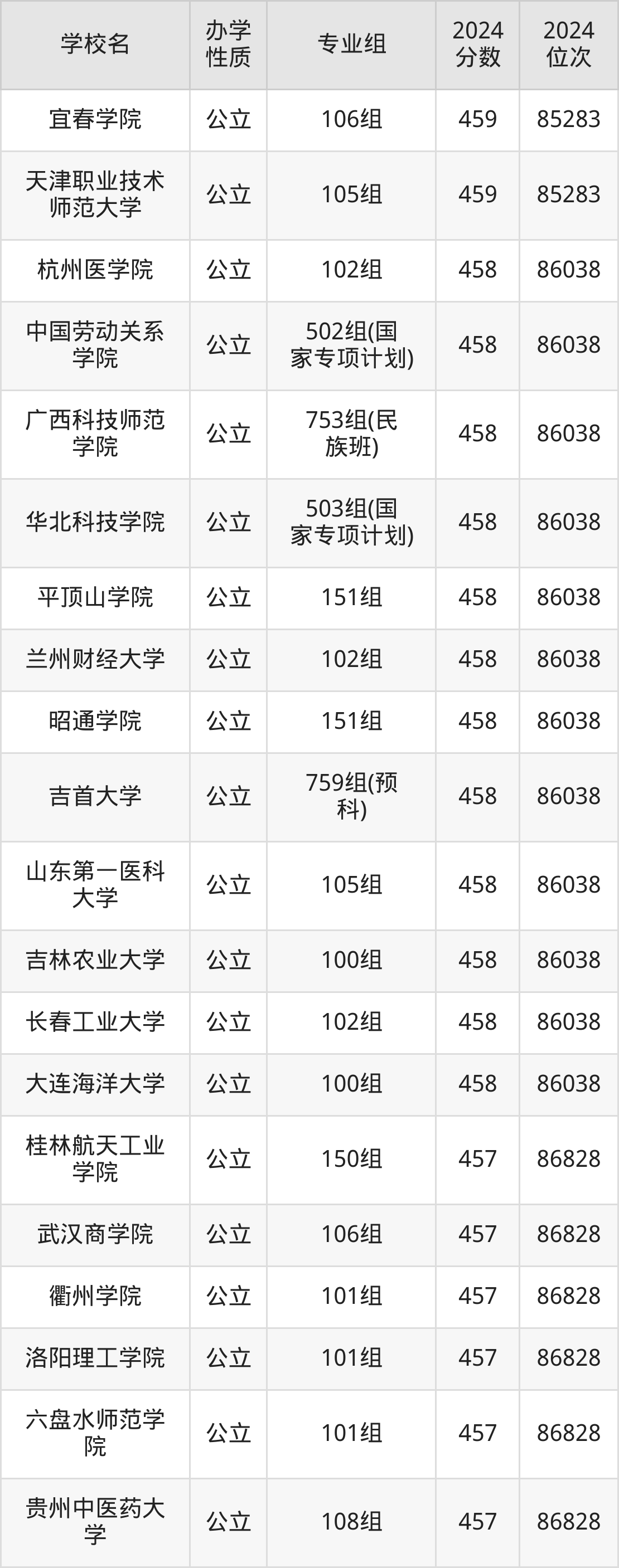 | 学校名 | 专业组 | 2024 分数 | 2024 位次 |