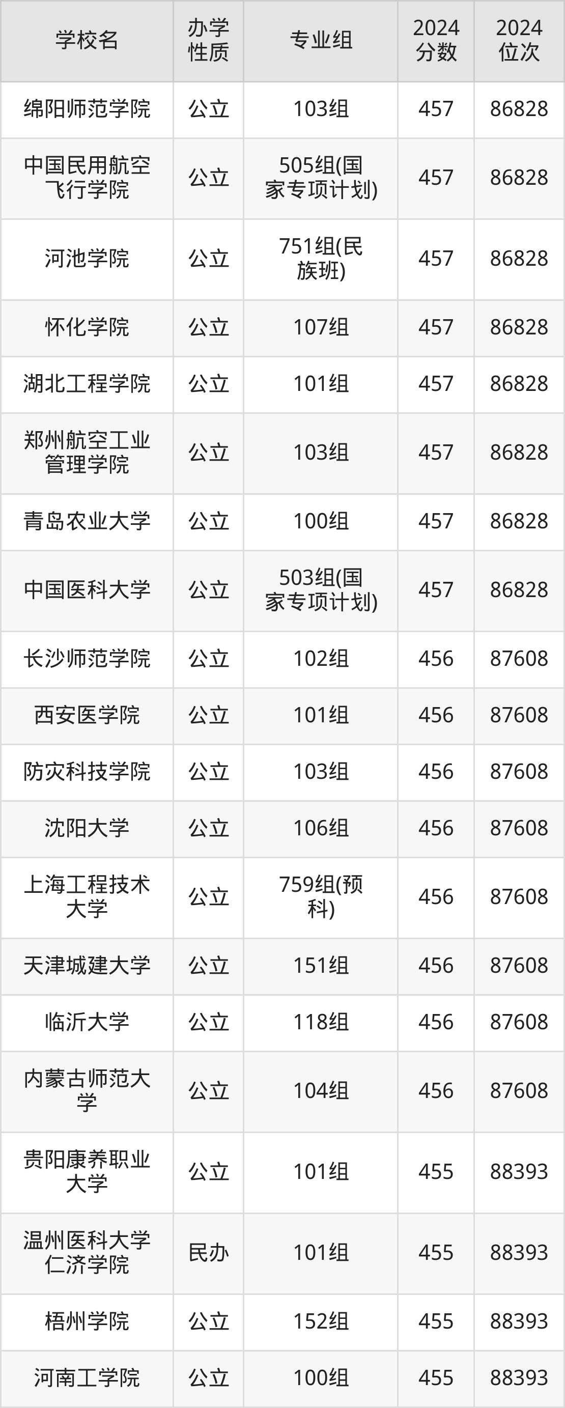 | 中国医科大学 | 503组(国 家专项计划) | 457 | 86828 |