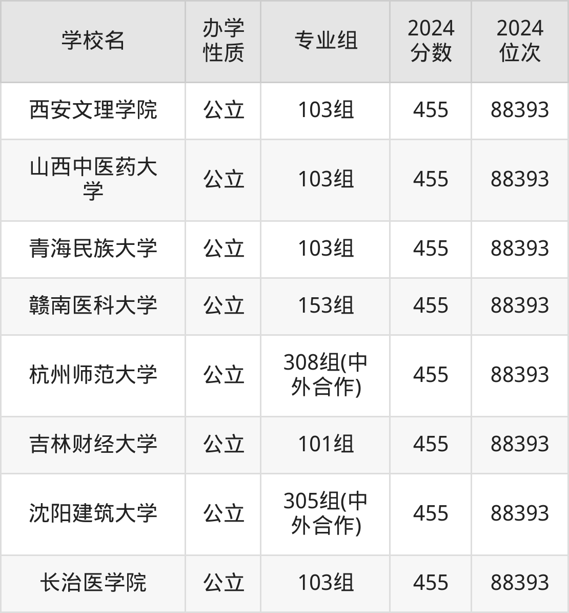 | 桂林医科大学 | 722组(民 族班) | 457 | 86828 |