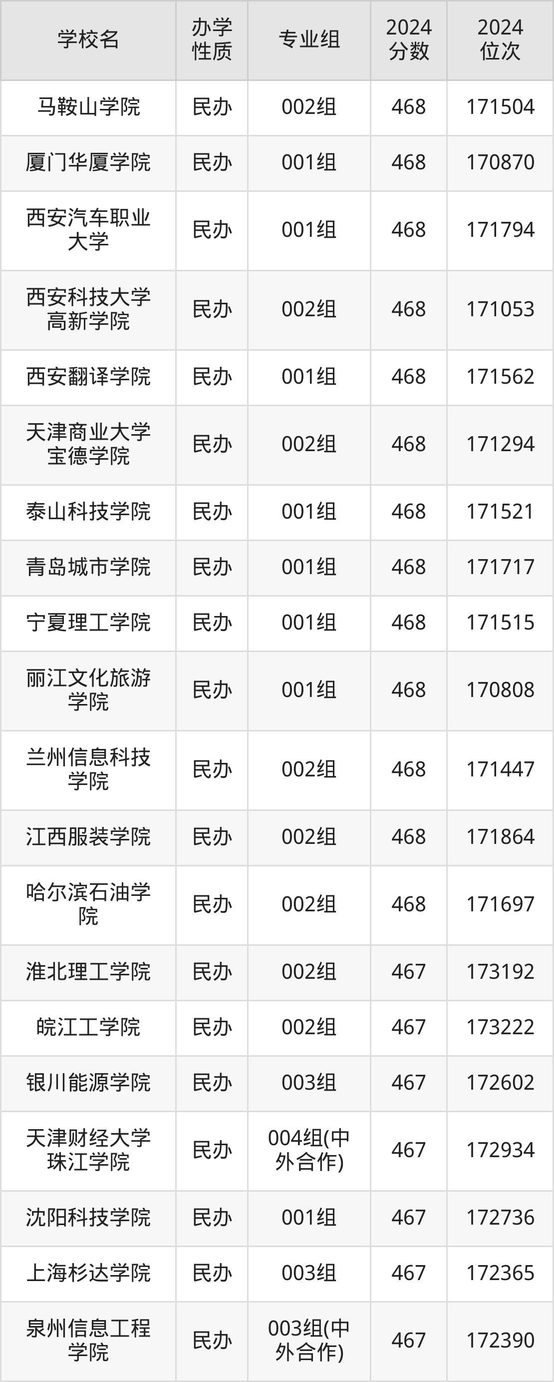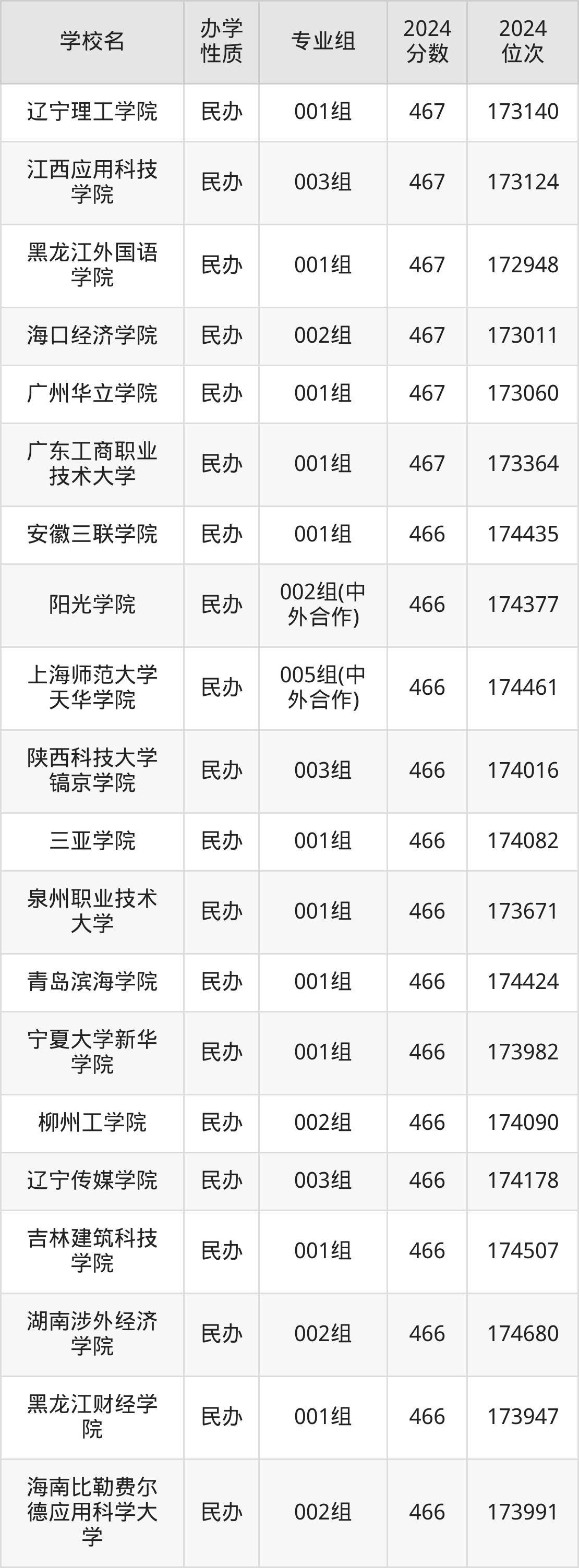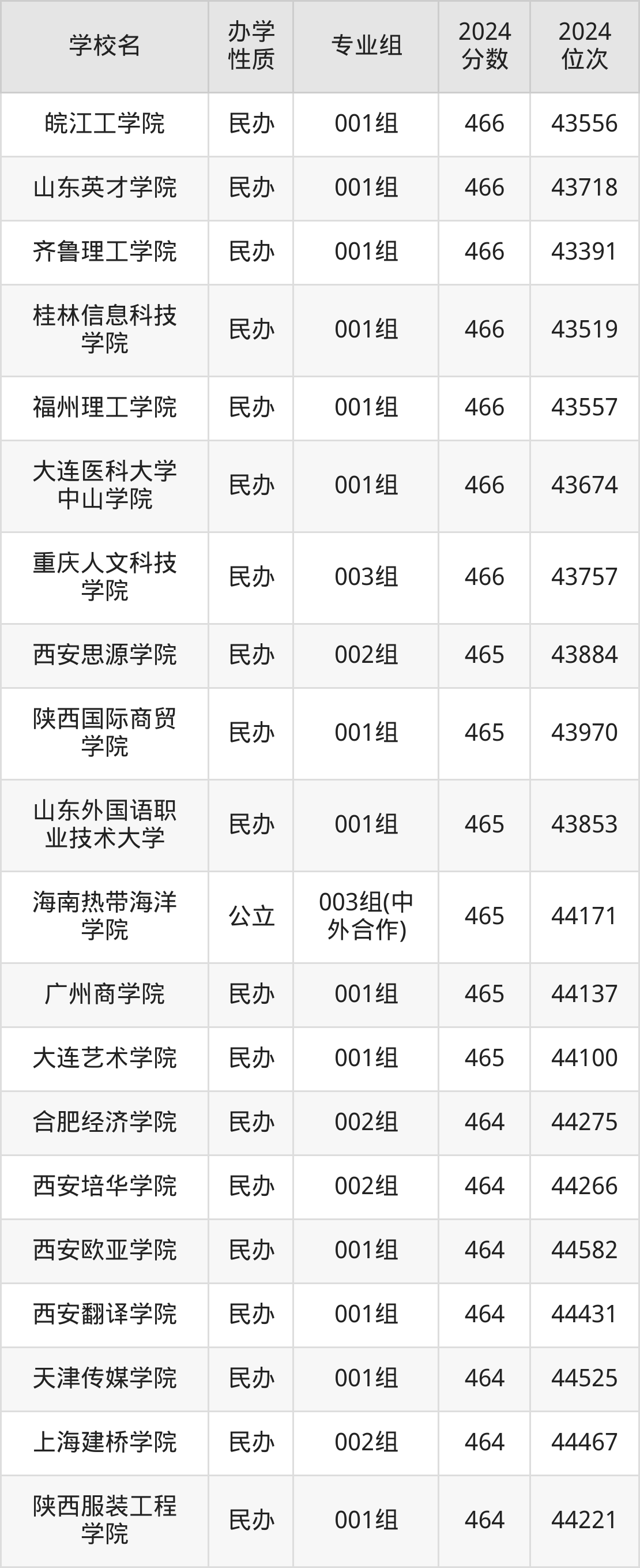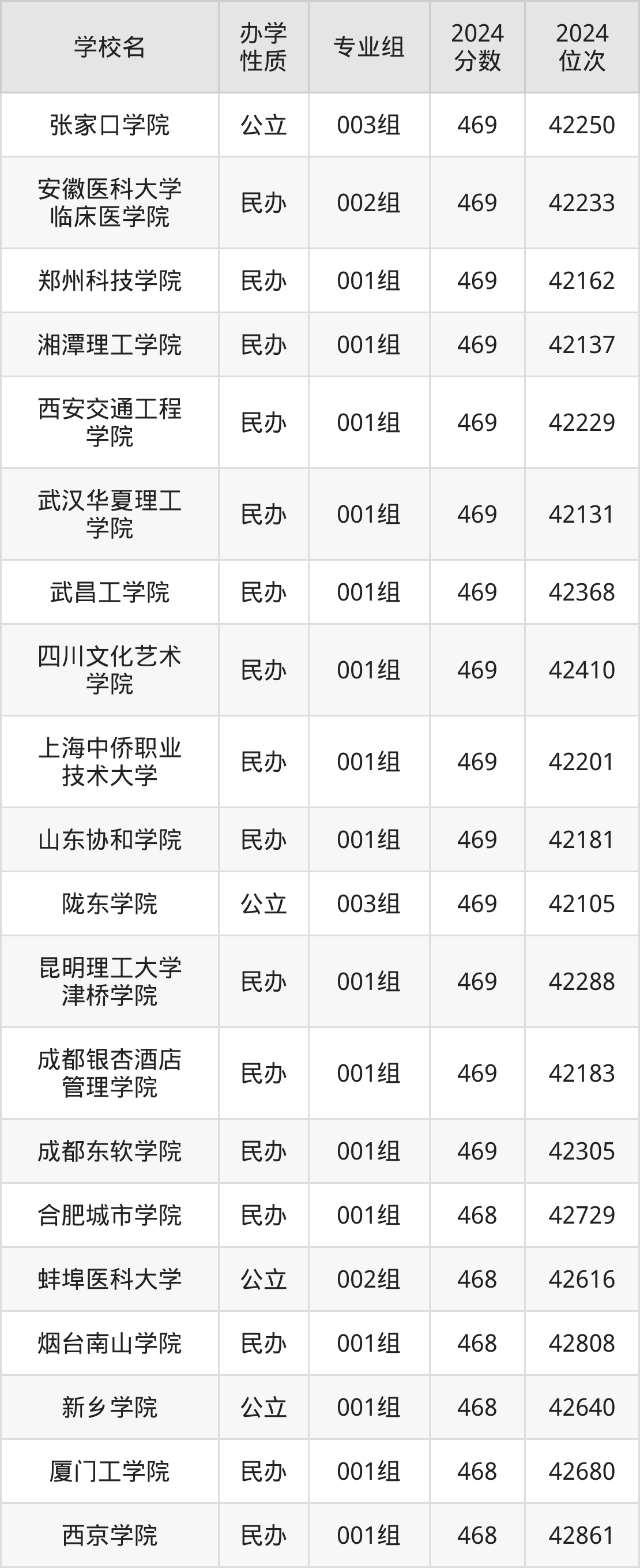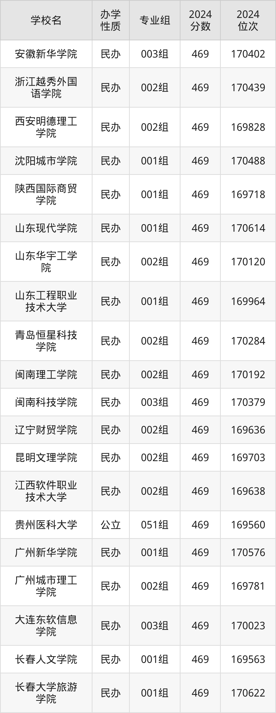 | 学校名 | 专业组 | 2024 分数 | 2024 位次 |