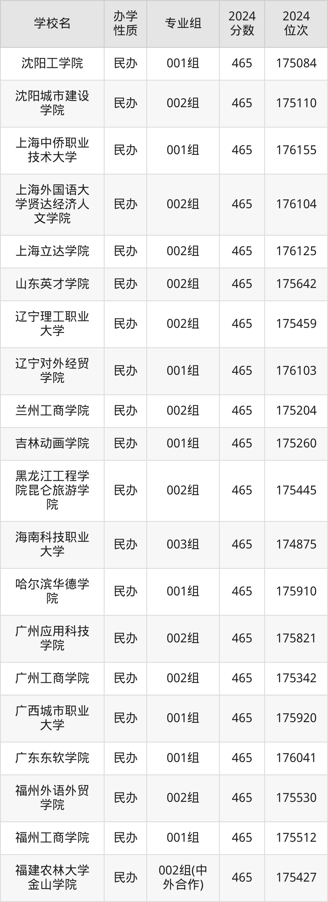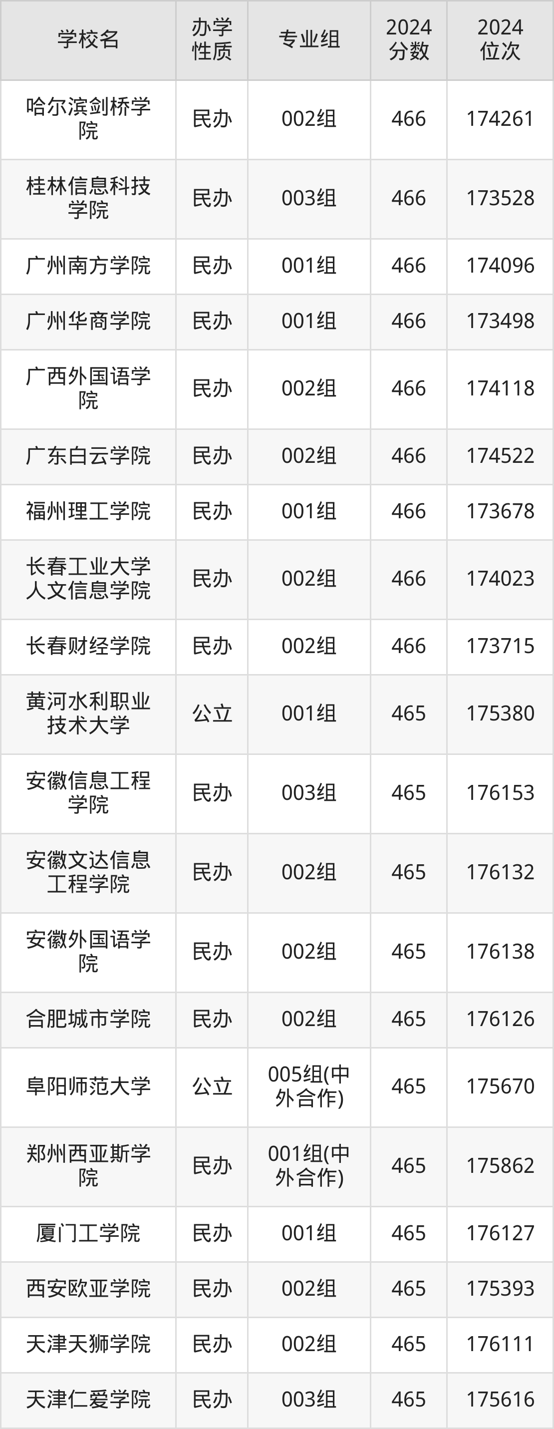 | 郑州西亚斯学 院 | 001组(中 外合作) | 465 | 175862 |